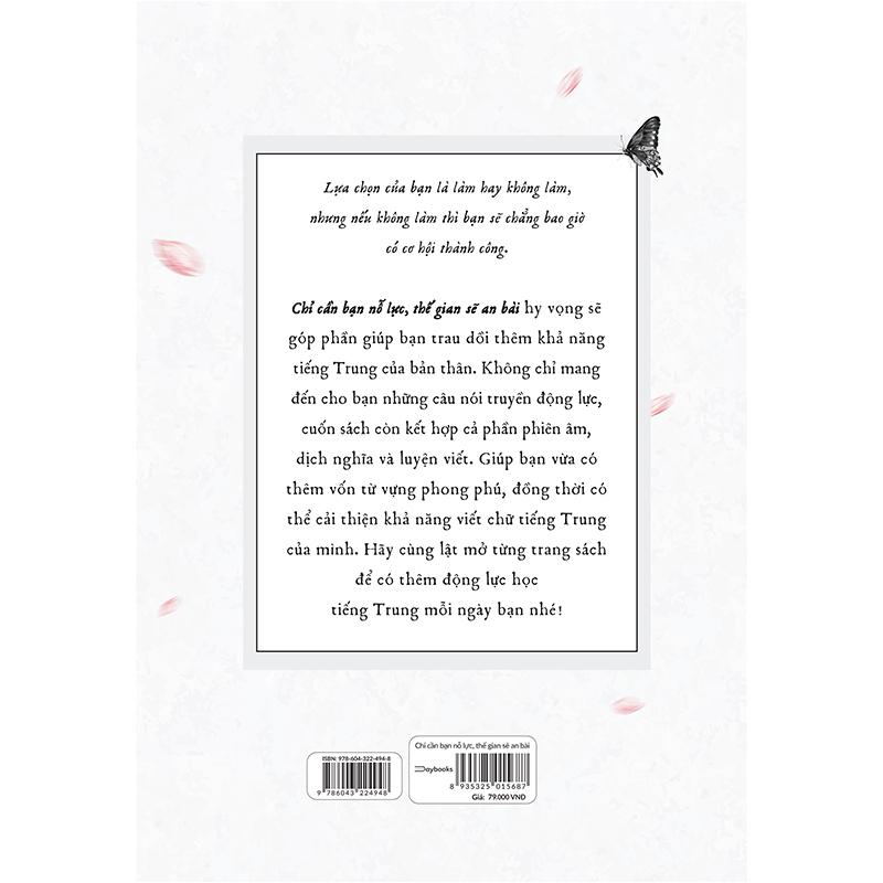 Cuốn sách song ngữ Việt - Trung phiên bản luyện viết “Chỉ cần bạn nỗ lực, thế gian sẽ an bài” sẽ thầm thì những lời dịu dàng để tiếp thêm sức mạnh tinh thần cho bạn cố gắng hơn mỗi ngày: