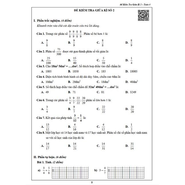 Toán 4 | Đề kiểm tra giữa kì 2 | Đề số 1 | Ôn thi học kì 2 | Thầy Nguyễn Văn Quyền