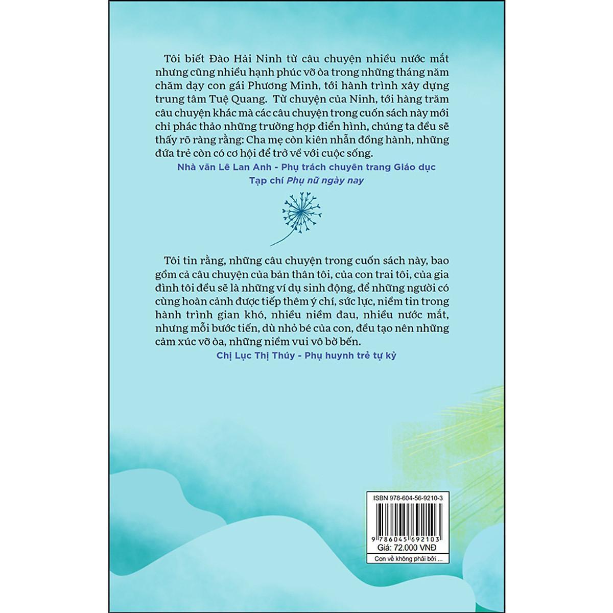 Bộ sách 2 cuốn Con về và Con về không phải phép màu là những cuốn sách được ghi lại từ trải nghiệm của chính người trong cuộc là cha mẹ có con tự kỷ – Đào Hải Ninh và những người bạn đồng hành.