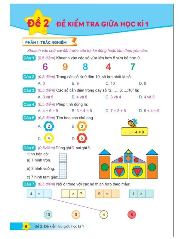 " ĐỀ KIỂM TRA TOÁN 1 HỌC KÌ 1 VÀ HỌC KÌ 2". Nội dung mỗi cuốn sách chia theo 20 đề ôn luyện. Câu trúc gồm 2 phần: