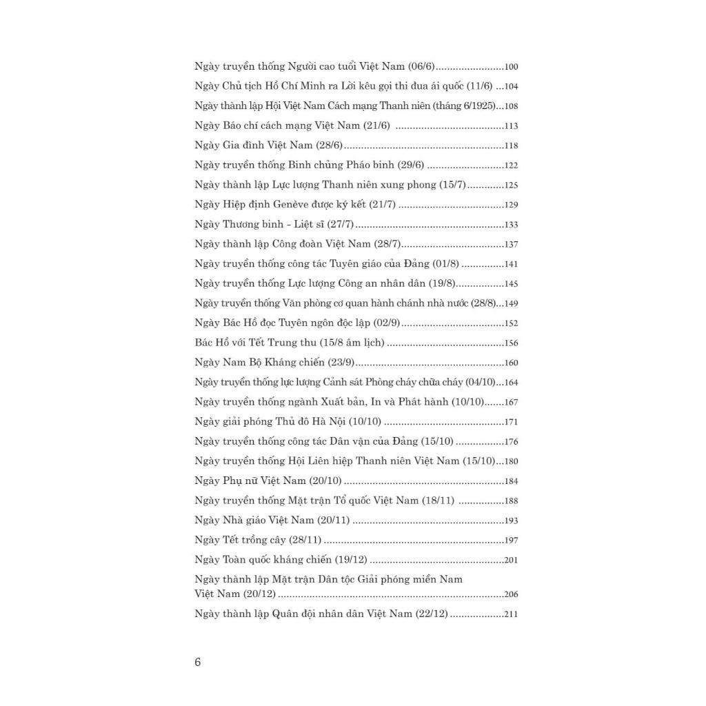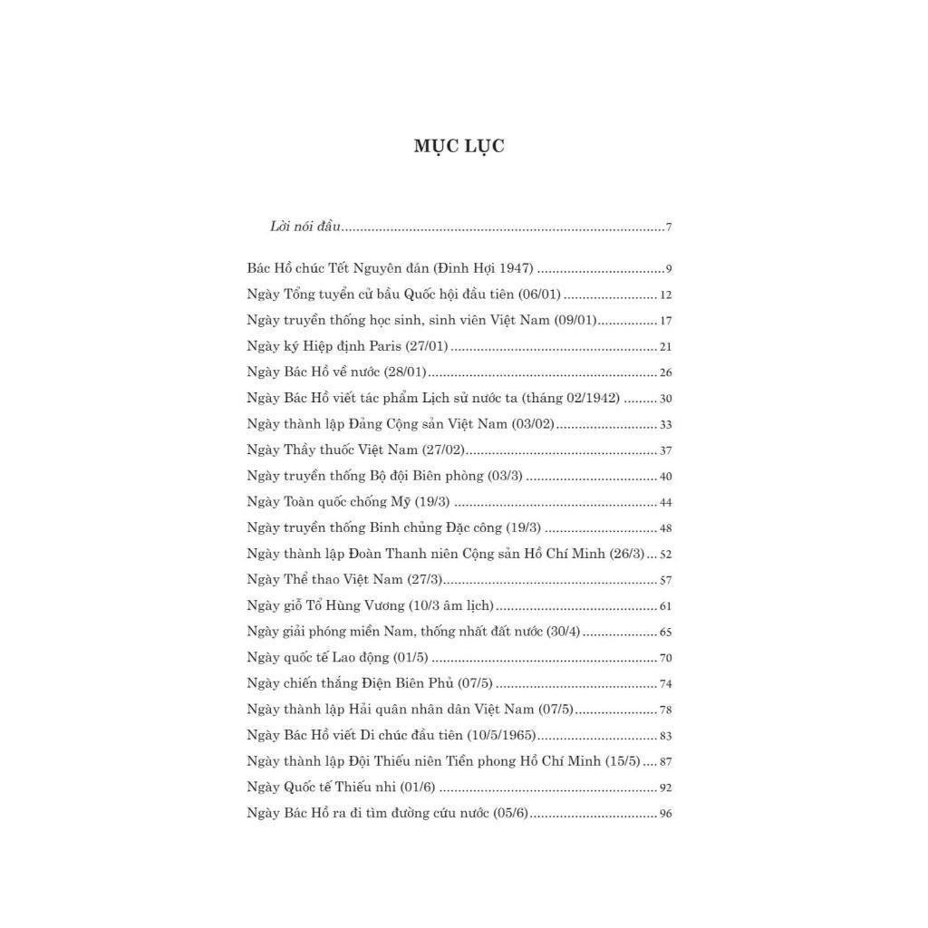 Vì vậy, Nhà xuất bản Trẻ thực hiện quyển sách Bác Hồ với các ngày lễ, kỷ niệm lớn trong năm do tác giả Trần Văn Phương biên soạn với 50 sự kiện theo thứ tự thời gian ngày tháng trong năm của nước ta. Trong mỗi bài giới thiệu về các ngày lễ, kỷ niệm đó, chúng tôi nêu lên quá trình hình thành, khái quát diễn tiến, ý nghĩa tầm quan trọng của sự kiện gắn với các lời dạy của Bác Hồ kính yêu để bạn đọc vận dụng vào thực tiễn.
