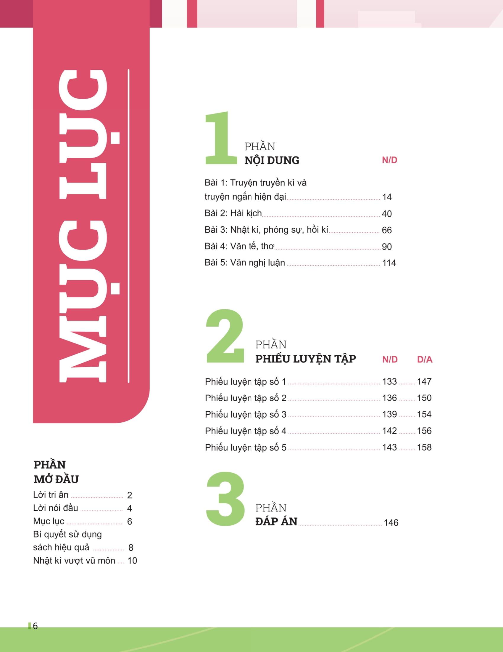 Đây là cuốn sách được biên soạn theo tinh thần thi mới của Bộ Giáo dục và Đào tạo, theo cấu trúc đề thi 3 phần: Kiểm tra kiến thức (câu 1); Nghị luận xã