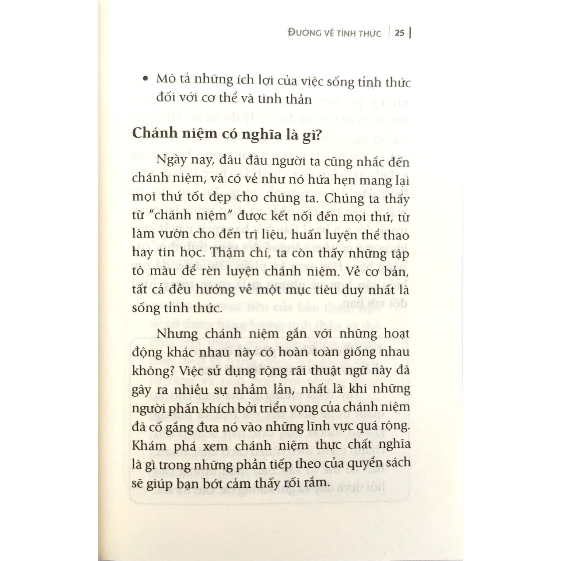 “Đường về tỉnh thức” là cuốn sách giúp bạn tiếp cận với Chánh niệm một cách gần gũi và dễ hiểu nhất. Thông qua cuốn sách, tác giả - Tiến sĩ Tamara Russell sẽ giúp bạn nhận ra những lầm tưởng của mọi người về Chánh niệm từ trước đến nay. Từ đó nhìn thấu được nguồn gốc, cơ chế, và ý nghĩa của nó trong cuộc sống thường nhật, để có sự cân nhắc trong từng hành động thay vì làm mọi thứ theo bản năng và thiếu suy nghĩ. Nữ tác giả cũng chia sẻ rằng, cuốn sách sẽ là người bạn đầu tiên của bạn trên hành trình dấn thân vào Chánh niệm, đặc biệt là khi bạn đặt sự tỉnh thức lên một vị trí quan trọng trong cuộc đời mình.