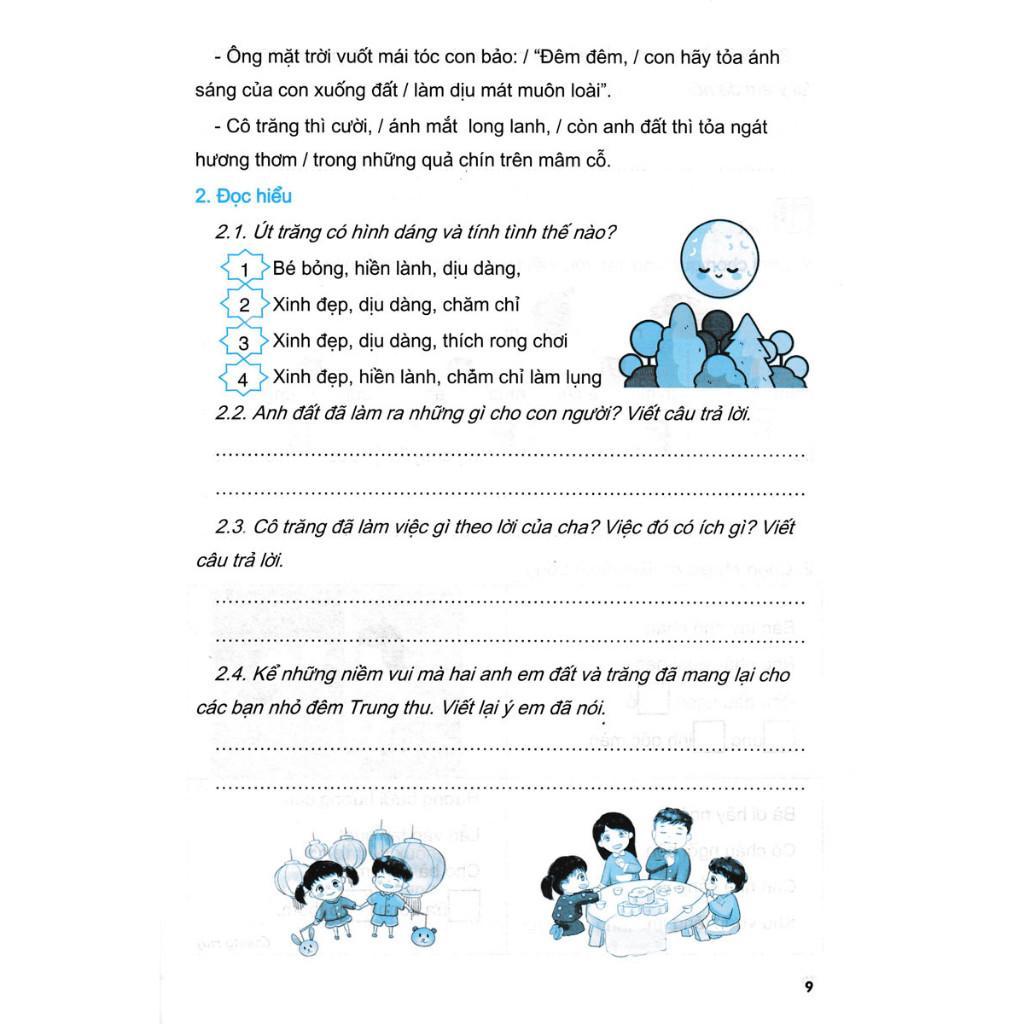 Bộ sách gồm 2 tập dùng cho 2 học kì. Học sinh có thể làm bài tập trực tiếp vào sách để giảm thiểu thời gian học. Dưới sự hỗ trợ, hướng dẫn của các thầy cô giáo, các vị phụ huynh, học sinh có thể hoàn thành từng hoạt động trên lớp hoặc ngoài giờ học một cách linh hoạt để từng bước nâng cao năng lực tiếng Việt của mình cho dù các em đang học theo sách Tiếng Việt 3 của bộ sách Cánh Diều hay Chân trời sáng tạo hay Kết nối tri thức với cuộc sống.