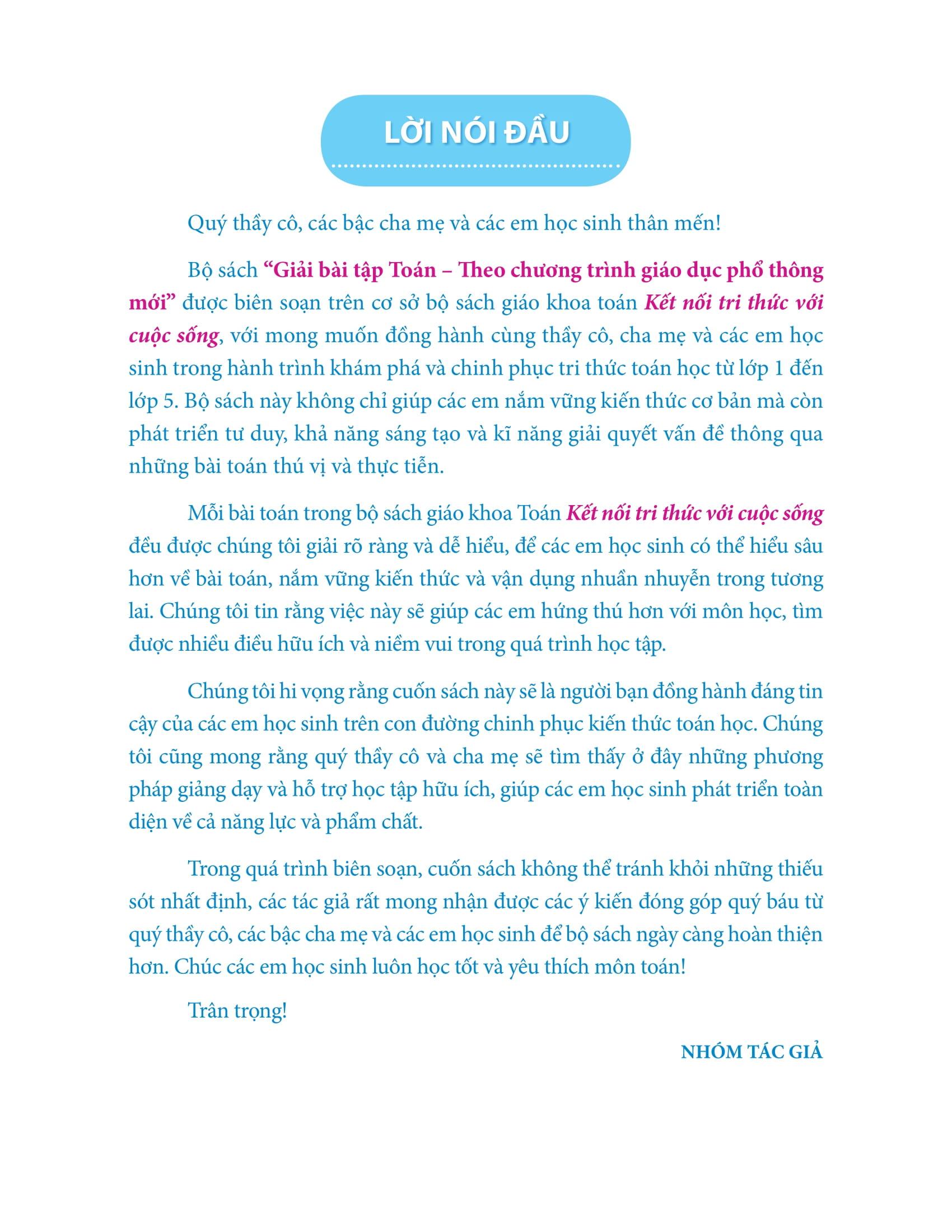 Bộ sách Giải bài tập toán được biên soạn trên cơ sở sách giáo khoa Kết nối tri thức với cuộc sống từ lớp 1 đến lớp 5. Bộ sách này không chỉ giúp các