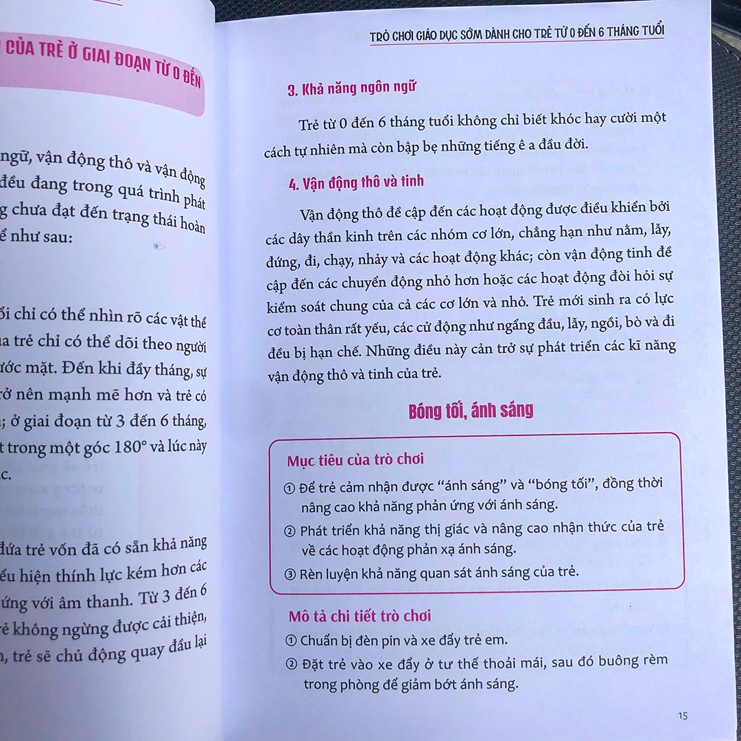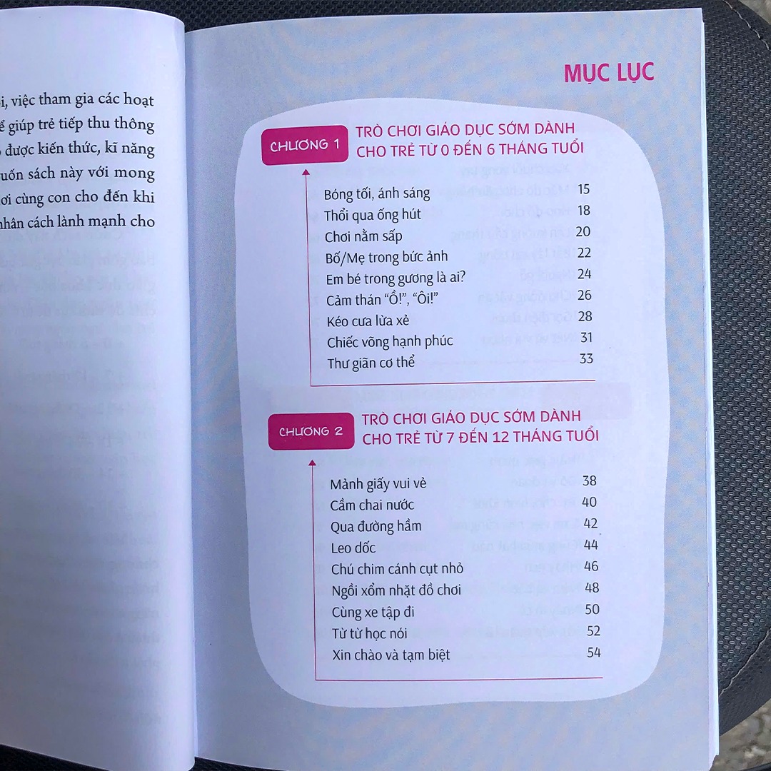 - 30-36 tháng tuổi Mỗi nhóm tuổi được mô tả trong 1 chương, tổng cộng có 6 chương. Mỗi chương gồm 9 trò chơi, mỗi trò chơi rèn luyện một hoặc nhiều khả năng của trẻ nhằm ggiusp trẻ có được những khả năng cần thiết trước khi bước vào mẫu giáo. Chơi là cách học tự nhiên nhất của trẻ. Trẻ phát triển bản thân thông qua việc chăm chỉ tham gia các hoạt động. Đối với trẻ 0 đến 3 tuổi, việc tham gia các hoạt động không chỉ có thể tiếp thu thông tin về môi trường xung quanh, mà còn có được kiến thức, kĩ năng trong trò chơi. Do đó, cuốn sách này với mong muốn giúp các bậc phụ huynh vui vẻ chơi cùng con cho đến khi con vào mẫu giáo, đồng thời bồi dưỡng nhân cách lành mạnh của trẻ thông qua trò chơi.