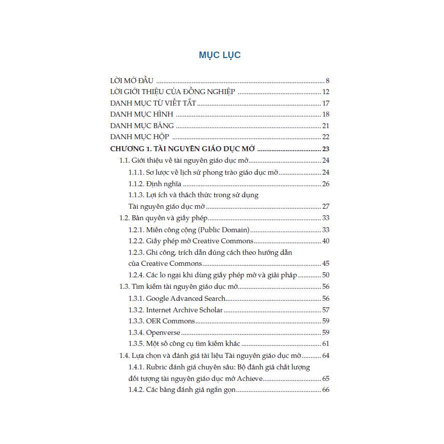 Cuốn sách này gồm hai chương lớn, tương ứng với hai nội dung là GIÁO DỤC MỞ và KHOA HỌC MỞ, được biên soạn dưới dạng cẩm nang hướng dẫn dành cho giảng viên, giáo viên, nhà nghiên cứu, học viên cao học, nghiên cứu sinh và sinh viên. Tuy nhiên, cuốn sách này cũng phù hợp với bất kỳ ai quan tâm đến chủ đề của nó một cách bài bản, nghiêm túc.
