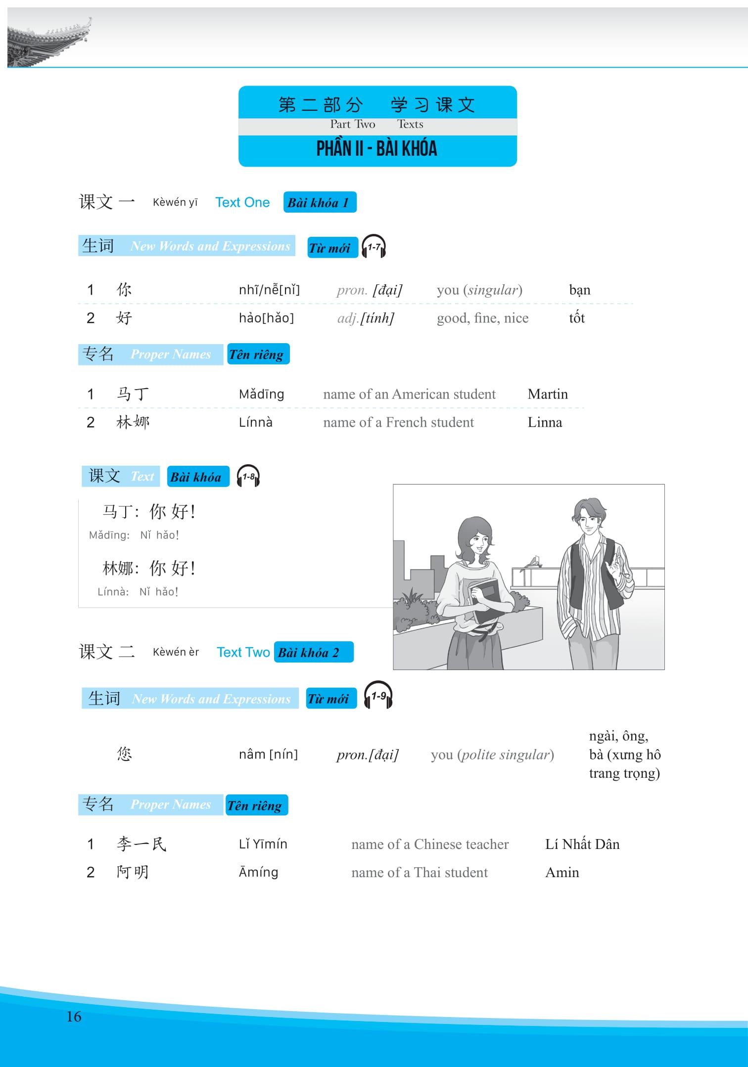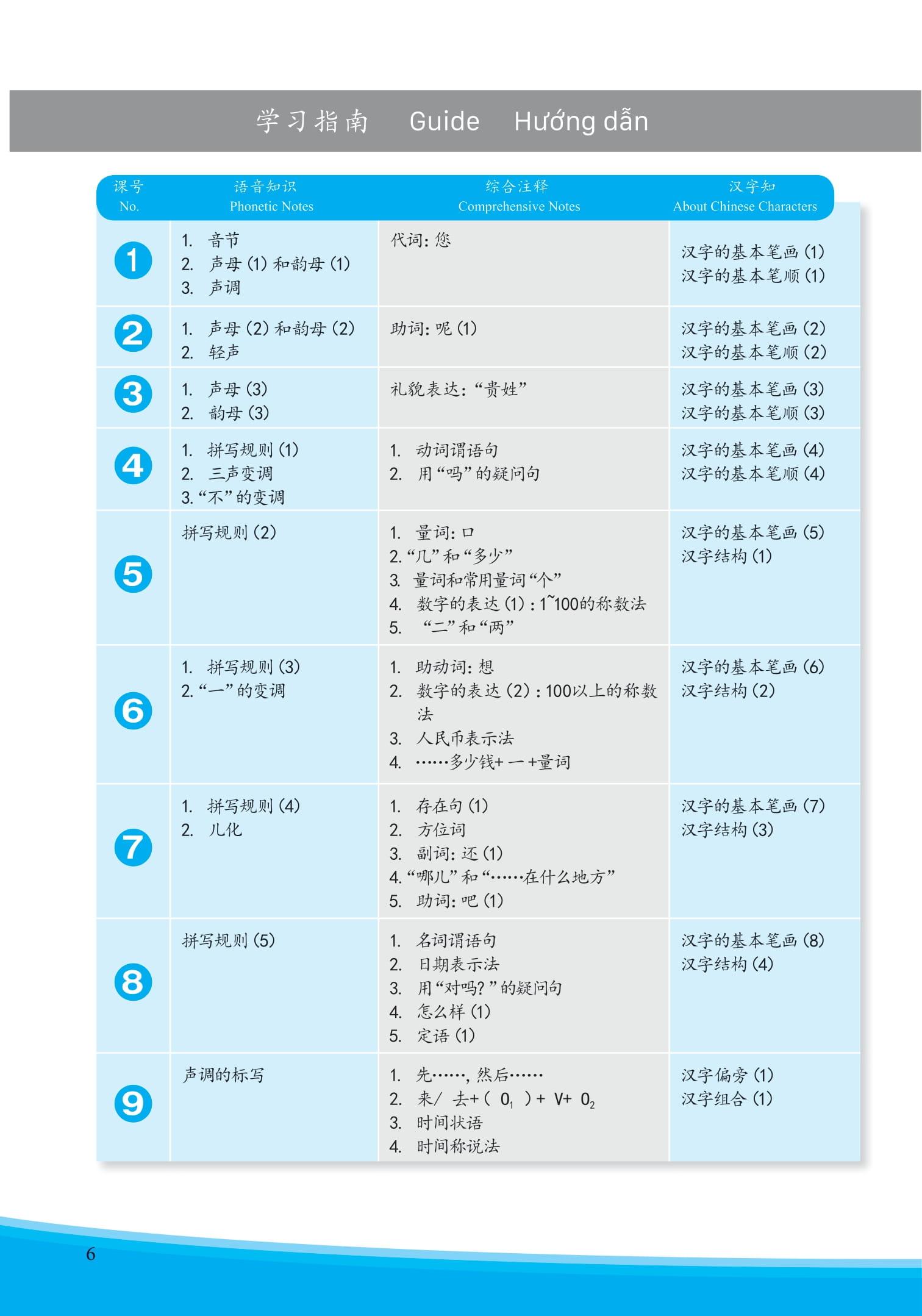Giáo Trình Hán Ngữ 1 - Tập 1 - Quyển Thượng Các bài học trong “Giáo trình Hán ngữ 1” Tập 1 được thiết kế gồm 5 phần: 1. Bài đọc, 2. Từ mới, 3.