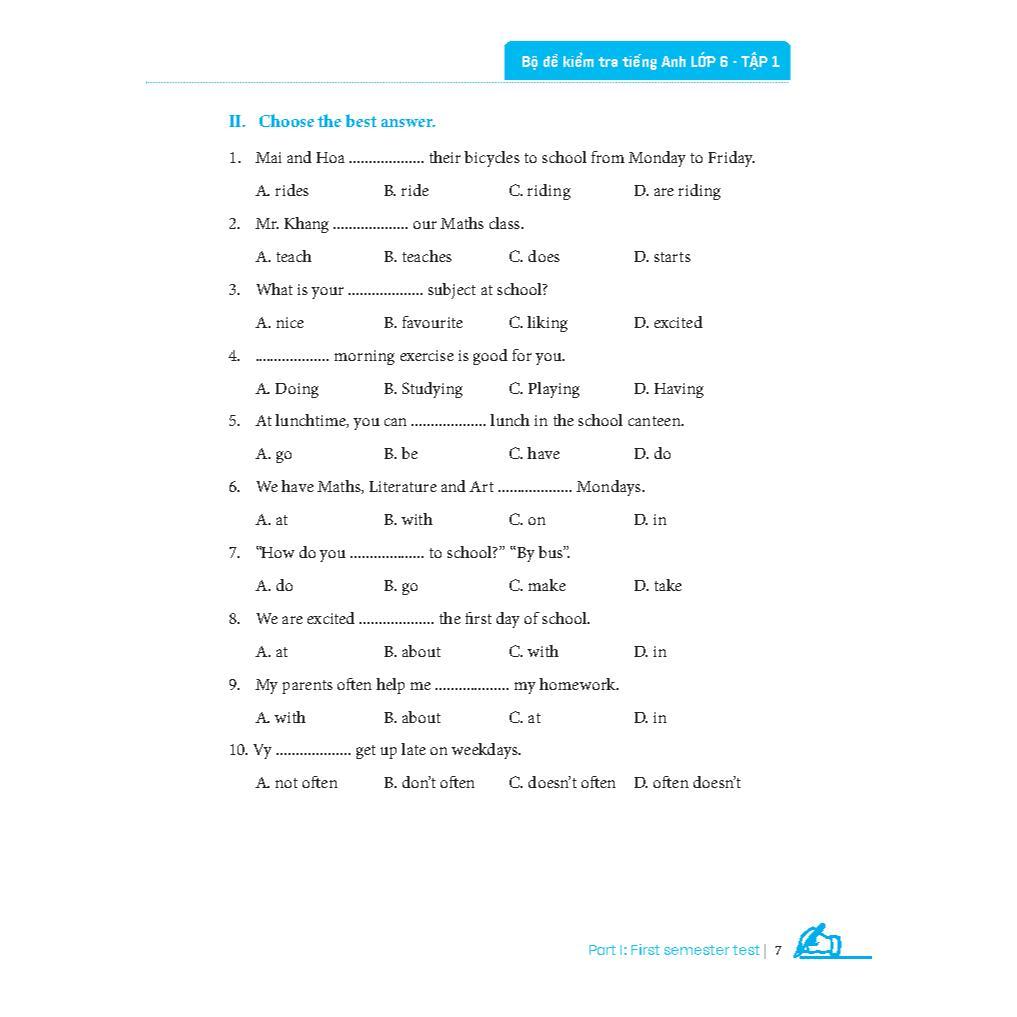 Nhằm giúp các em học sinh ôn tập và hệ thống hóa kiến thức đã học trong sách giáo khoa và cũng là tài liệu tham khảo hữu ích cho các thầy cô giáo trong quá trình giảng dạy môn Tiếng Anh, chúng tôi biên soạn bộ sách “Bộ đề kiểm tra Tiếng Anh lớp 6” theo chương trình SGK thí điểm mới nhất của Bộ Giáo dục và Đào tạo.