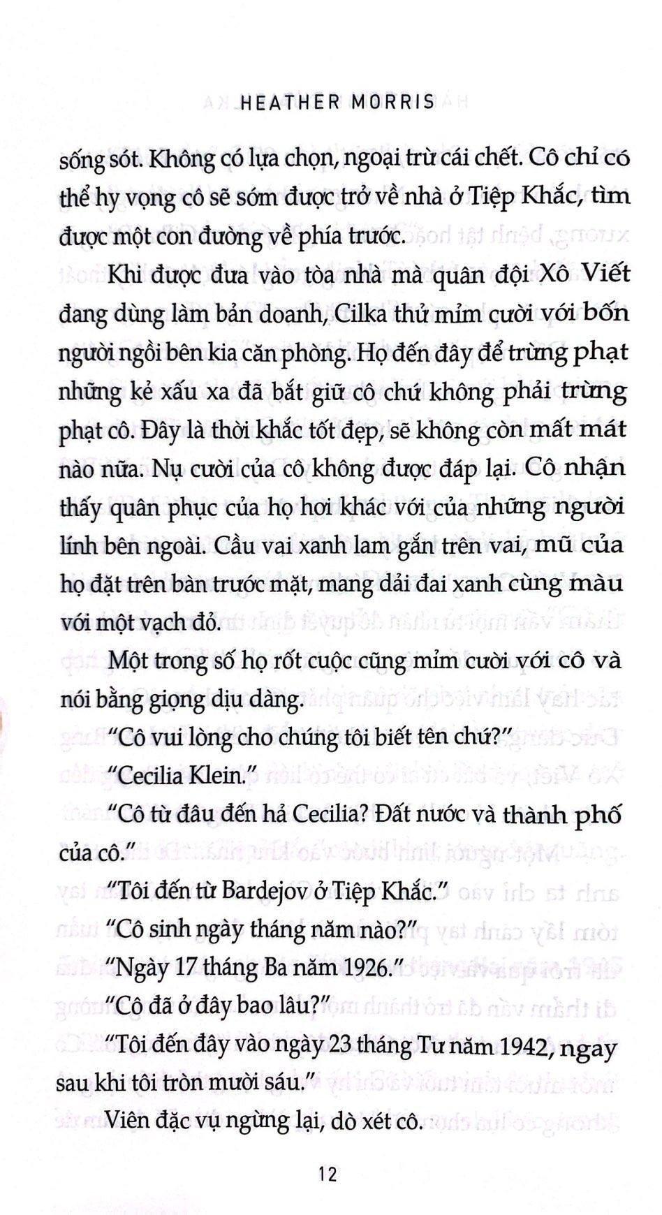 Năm 1942, Cilka Klein chỉ mới mười sáu tuổi khi cô cùng gia đình bị đưa đến trại tập trung Auschwitz-Birkenau rồi lọt vào mắt viên sĩ quan SS cấp cao tại đó. Cilka nhanh chóng học được rằng quyền lực, dù là bị ép phải nhận, đồng nghĩa với sống sót.