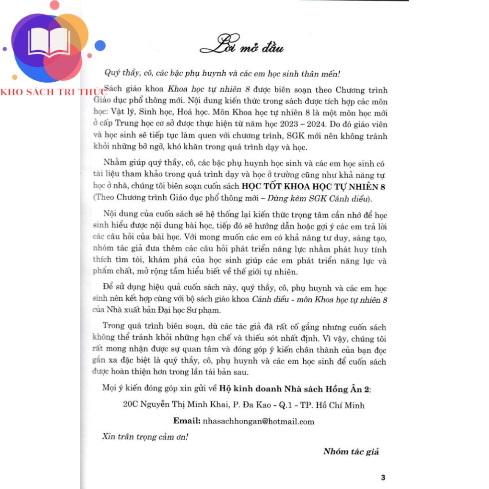 Để sử dụng hiệu quả cuốn Sách này, quý thầy, cô, phụ huynh và các em học sinh nên kết hợp cùng với bộ Sách giáo khoa Cánh diều - môn Khoa học tự nhiên 8 của Nhà xuất bản Đại học Sư phạm.