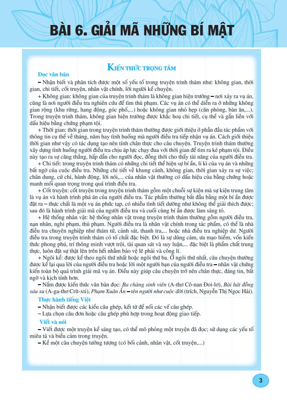 Nội dung gồm có: Bài 6: Bài học cuộc sống Bài 7: Thế giới viễn tưởng Bài 8: Trải nghiệm để trưởng thành Bài 9: Hòa điệu với tự nhiên Bài 10: Trang sách