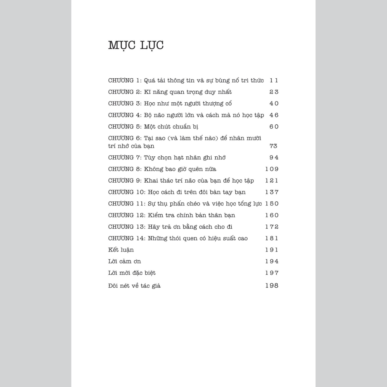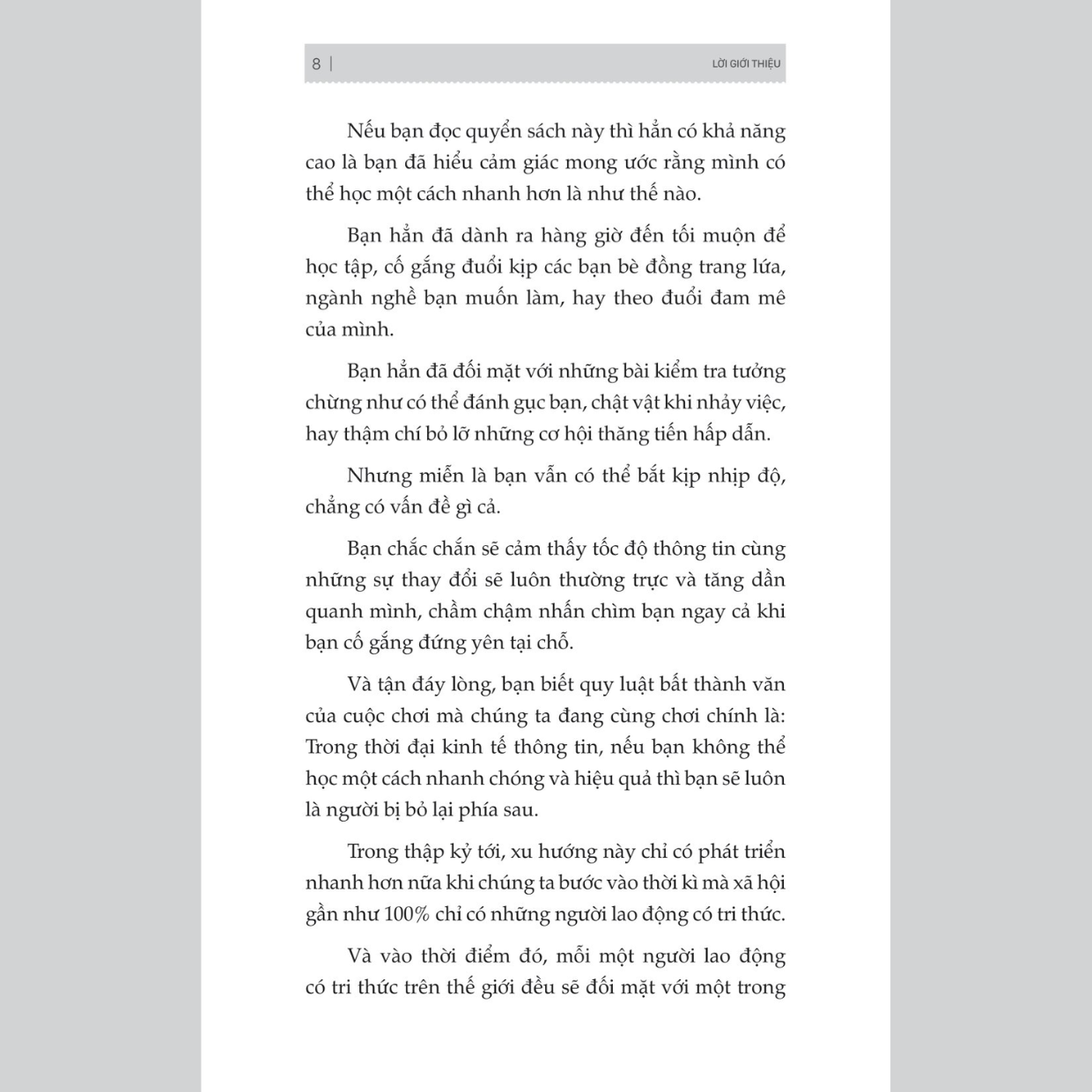 Trong cuốn sách này, Jonathan Levi tiết lộ một cách tiếp cận mạnh mẽ, dựa trên khoa học thần kinh để đọc nhanh hơn, ghi nhớ nhiều hơn và học tập hiệu quả hơn. Bạn sẽ nắm vững các kỹ thuật cổ xưa đang được sử dụng bởi những người nắm giữ kỷ lục thế giới và các vận động viên thi đấu trí nhớ, để mở khóa khả năng đáng kinh ngạc của bộ não con người. Bạn sẽ học cách tăng gấp đôi hoặc gấp ba tốc độ đọc, tăng cường sự tập trung và tối ưu hóa hiệu suất nhận thức của mình. Quan trọng nhất, bạn sẽ được trao quyền để tự tin tiếp cận bất kỳ chủ đề nào - từ kỹ năng kỹ thuật, đến tên và khuôn mặt, đến ngoại ngữ và thậm chí cả bài phát biểu dài - và học nó một cách dễ dàng.