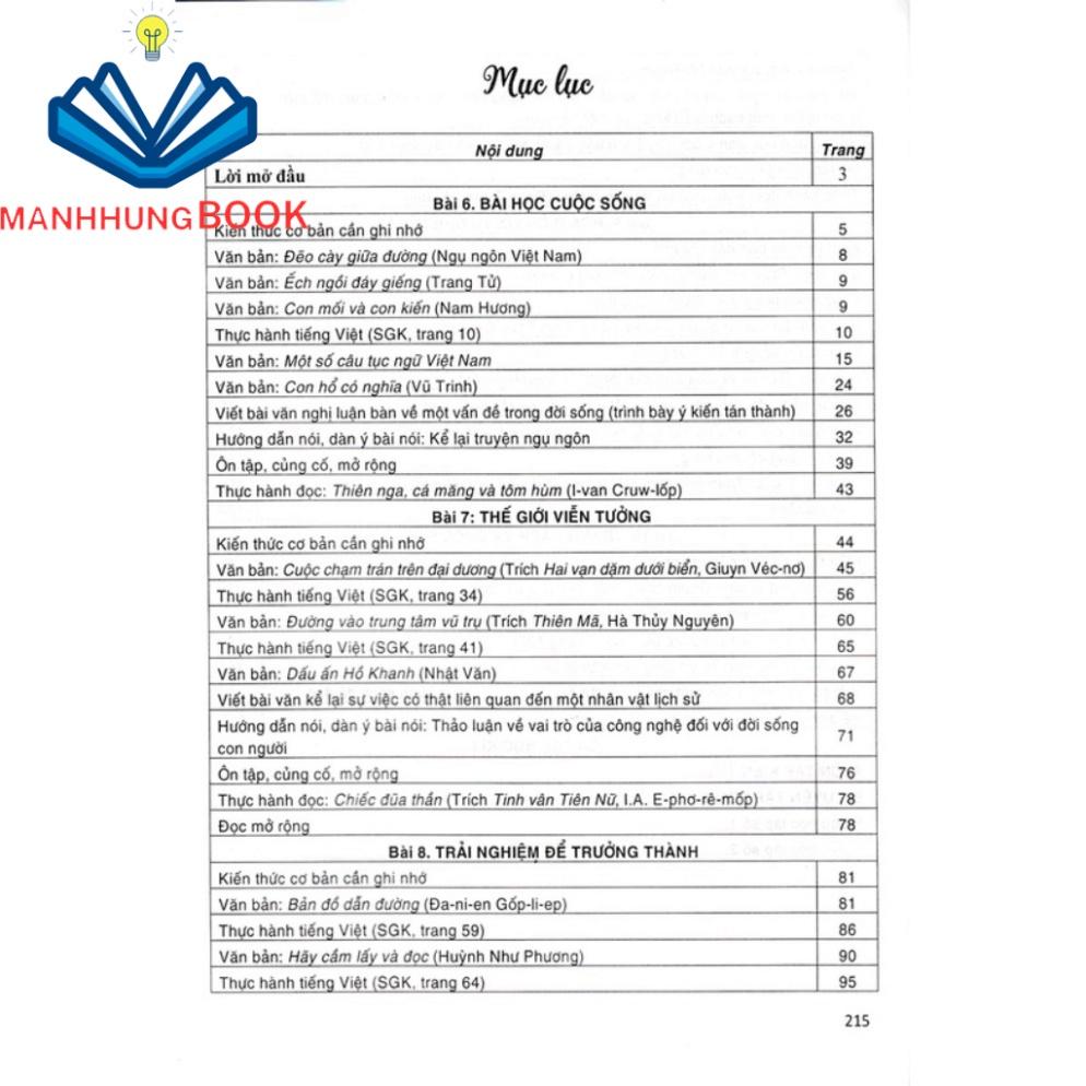 Ngoài việc hướng dẫn gợi ý trả lời các câu hỏi, cuốn sách còn cung cấp thêm các bài tập ôn tập, củng cố, mở rộng kiến thức môn Ngữ văn cũng như tự tin viết và nói được những kiểu văn bản: biểu cảm, nghị luận, thuyết minh,
