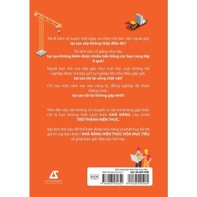 Thông qua những chia sẻ thiết thực của chính tác giả về kinh nghiệm làm việc, những thói quen có ích trong cuộc sống, cuốn sách Khả năng hiện thực hóa mục tiêu sẽ là kim chỉ nam giúp bạn biến khả năng của mình trở thành hiện thực, đạt được thành công và sống một cuộc đời mà bạn hằng mong muốn.