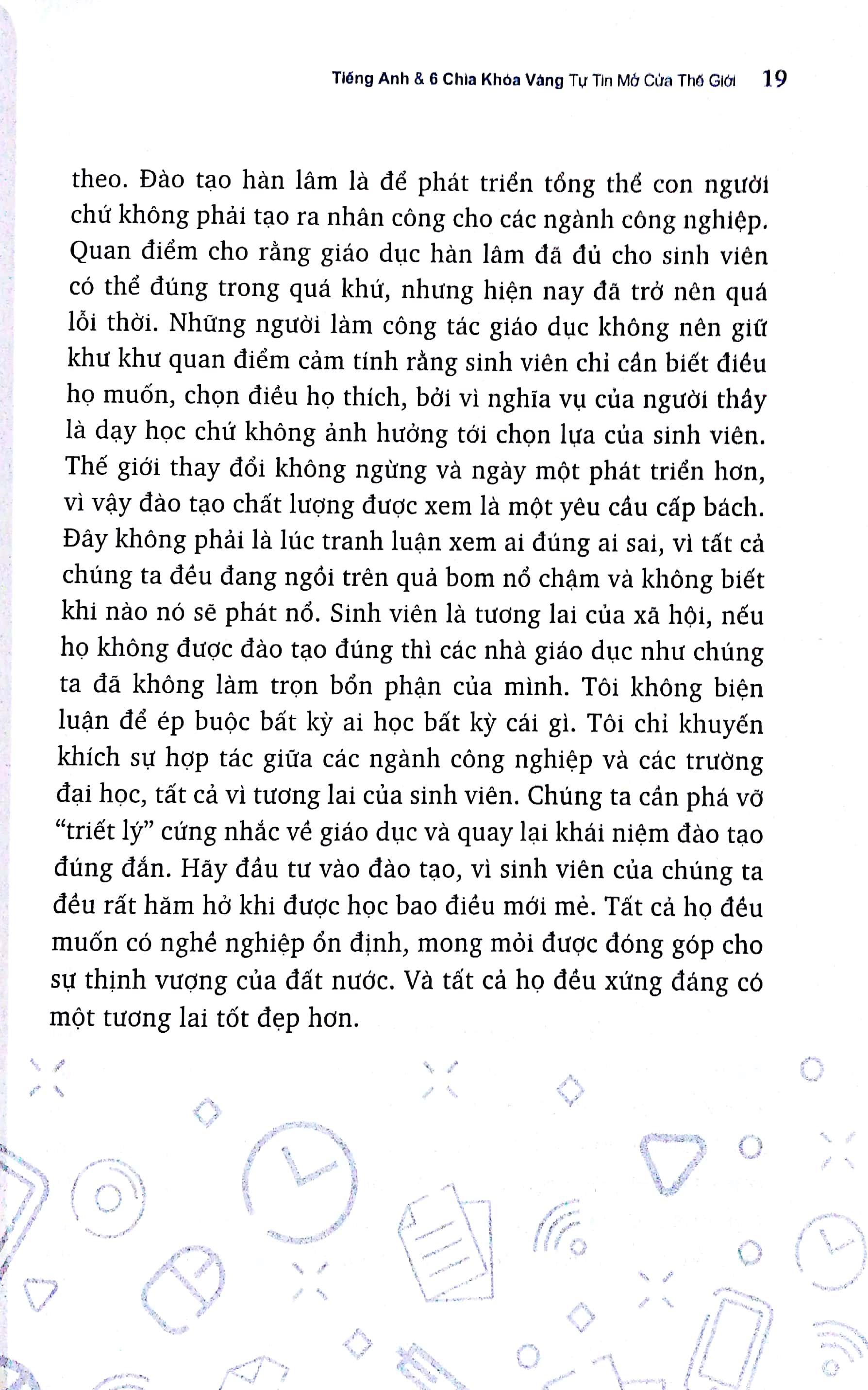 Với 6 kỹ năng vàng trong cuốn sách: Kỹ năng giao tiếp; Kỹ năng hợp tác; Kỹ năng sang tạo; Tư duy sáng tạo; Tư duy phản biện; Năng lực tự hoàn thiện bản thân; Kiến thức công nghệ, sẽ là chìa khóa để bạn mở ra mọi vấn đề cần thiết đối với một người trẻ đang chuẩn bị hành trang bước vào xây dựng sự nghiệp. Những kiến thức đó không chỉ dành cho thanh niên Việt Nam hay một quốc gia nào mà cho tất cả. Trong một thế giới phẳng, cạnh tranh giữa những cá nhân là toàn cầu chứ không riêng bối cảnh một quốc gia. Vì tính ứng dụng cao như thế nên quyển sách là món quà quý cho thanh niên Việt Nam.