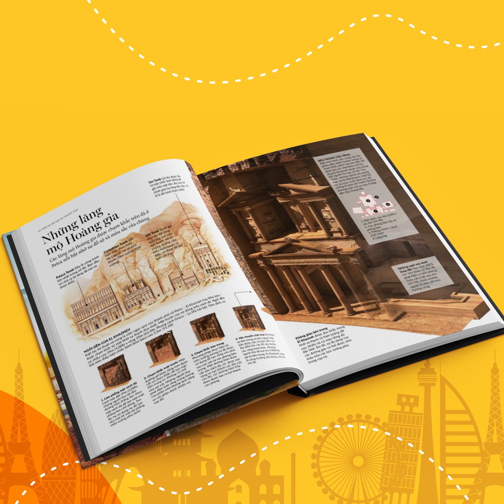 - Cuốn sách được trình bày khoa học với những chú giải tỉ mỉ, chính xác sẽ dẫn dắt chúng ta qua từng lục địa trên Trái đất và khám phá đến tận cùng những kỳ quan kỳ vĩ. -Ở mỗi 1 địa danh độc giả sẽ được tìm hiểu lịch sử, hoàn cảnh ra đời cho đến kĩ thuật xây dựng của người xưa; cho đến vị trí địa lý, diện tích, cấu tạo, địa hình chung và những câu chuyện độc đáo có 1-0-2 đằng sau quá trình xây dựng.