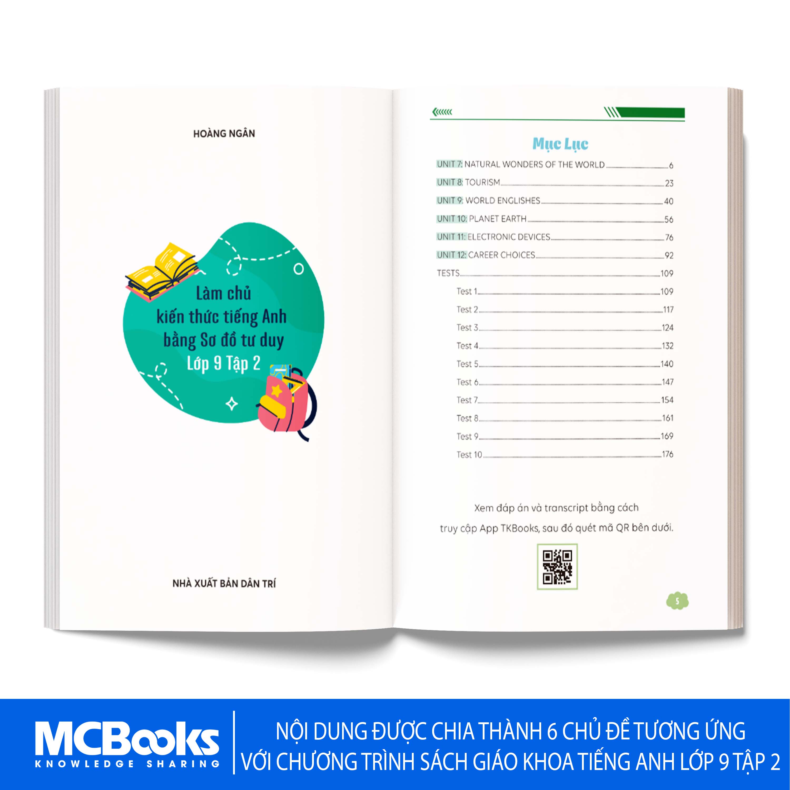 Cuốn sách “Làm chủ kiến thức tiếng Anh bằng Sơ đồ tư duy – Lớp 9 Tập 2” được chia thành 6 chủ đề tương ứng với chương trình sách giáo khoa Tiếng Anh lớp 9 tập 2. Mỗi chủ đề gồm các phần sau:
