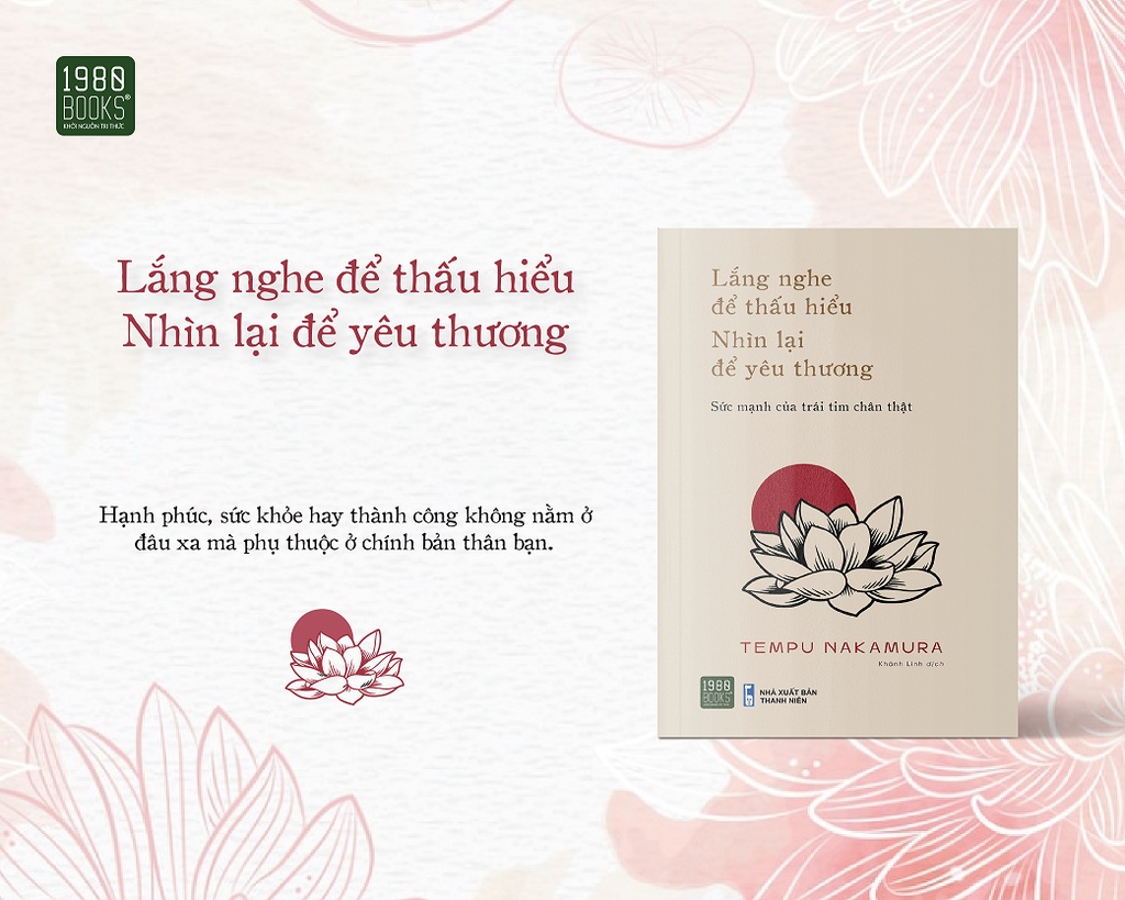 Tác giả Tempu Nakamura luôn tìm kiếm lí do tồn tại của con người từ “trạng thái của trái tim” và ông kết luận rằng cuộc đời của chúng ta chịu “sự chi phối của trái tim”. Từ quan điểm đó, cuốn sách “Lắng nghe để thấu hiểu, nhìn lại để yêu thương” này nhấn mạnh tới câu nói của nhà văn Tempu và được biên soạn một cách dễ hiểu, hơn nữa còn sử dụng những từ ngữ làm lay động trái tim, hướng tới những người luôn nung nấu ý nghĩa về cuộc sống. Hãy luôn sống vui tươi ngay cả khi bạn chỉ có một mình. Khi quen với điều này, vầng hào quang sẽ bao quanh bạn, sẽ có nhiều người bị hấp dẫn bởi điều đó và bạn sẽ có thêm thật nhiều bạn bè. Nhà văn Tempu cho rằng việc sống một cách tự nhiên chính là như vậy.