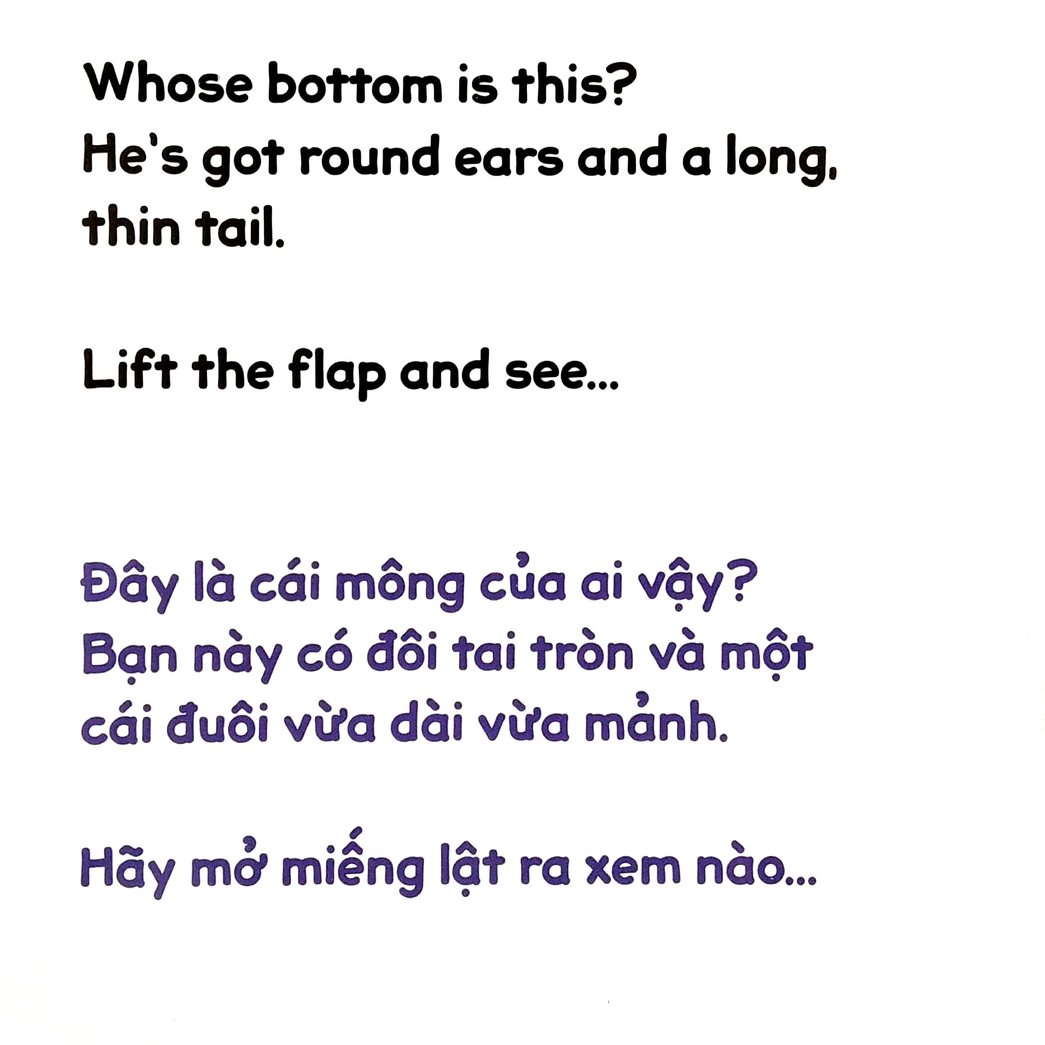 Sách Lật Tương Tác Song Ngữ 0-3 Tuổi: Mông Ai Đây? Bé mới tầm 1 tuổi đã cần đọc sách chưa? Bố mẹ muốn cho bé tiếp xúc sớm với sách được chứ? Bé còn