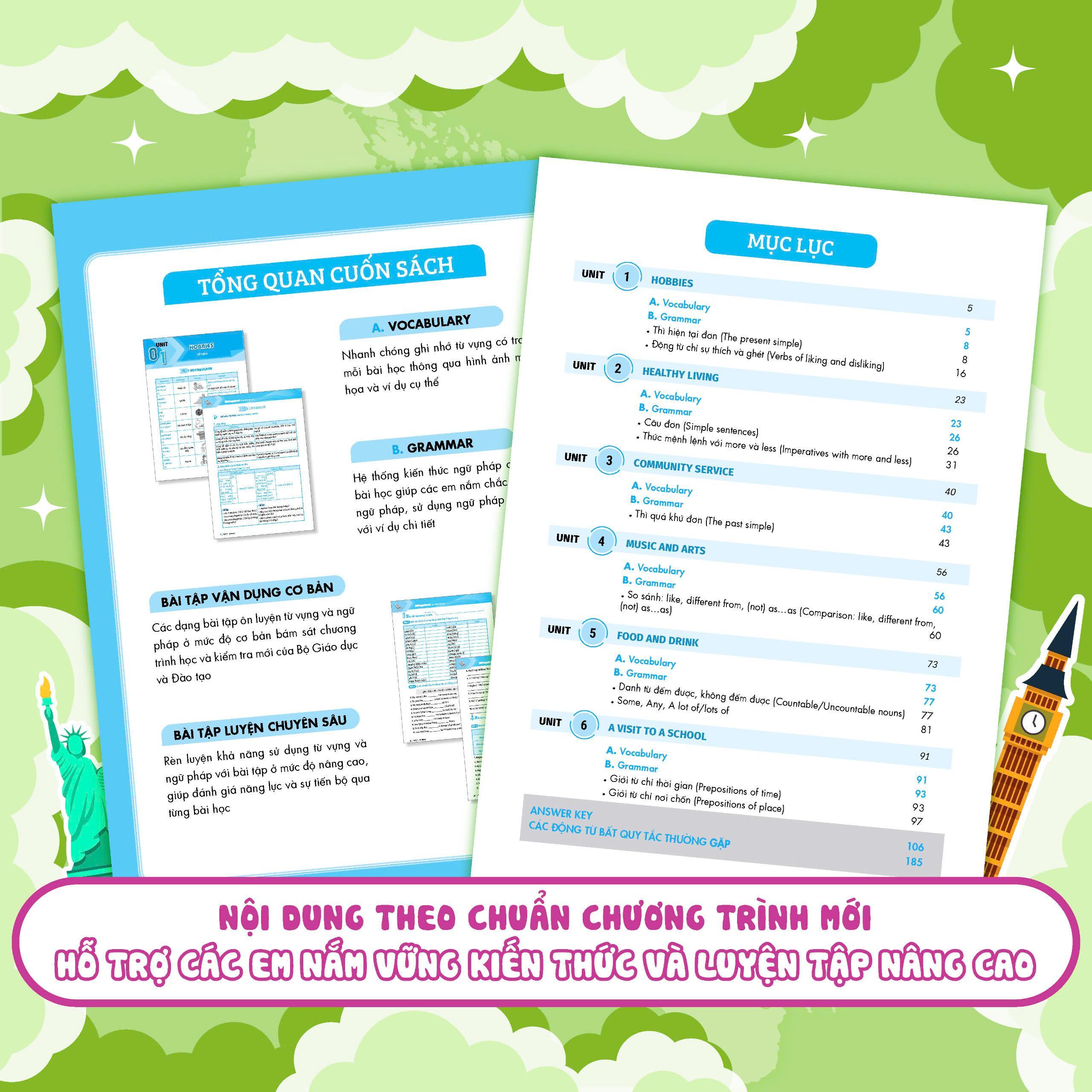 Nội dung bám sát khung chương trình giáo dục phổ thông mới lớp 7 của Bộ Giáo dục và Đào tạo giúp các em nắm vững kiến thức đã học trên lớp cũng như ôn luyện thêm các bài tập nâng cao, hỗ trợ quá trình tự học tiếng Anh hiệu quả.