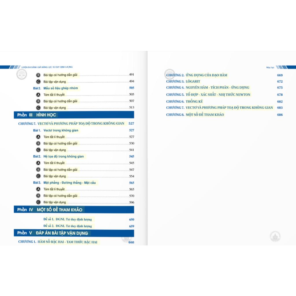 Cuốn Luyện thi Đánh giá Năng lực Tư duy Định Lượng - Phần kiến thức lớp 12 (Dành cho các kỳ thi đánh giá năng lực) gồm 5 phần :