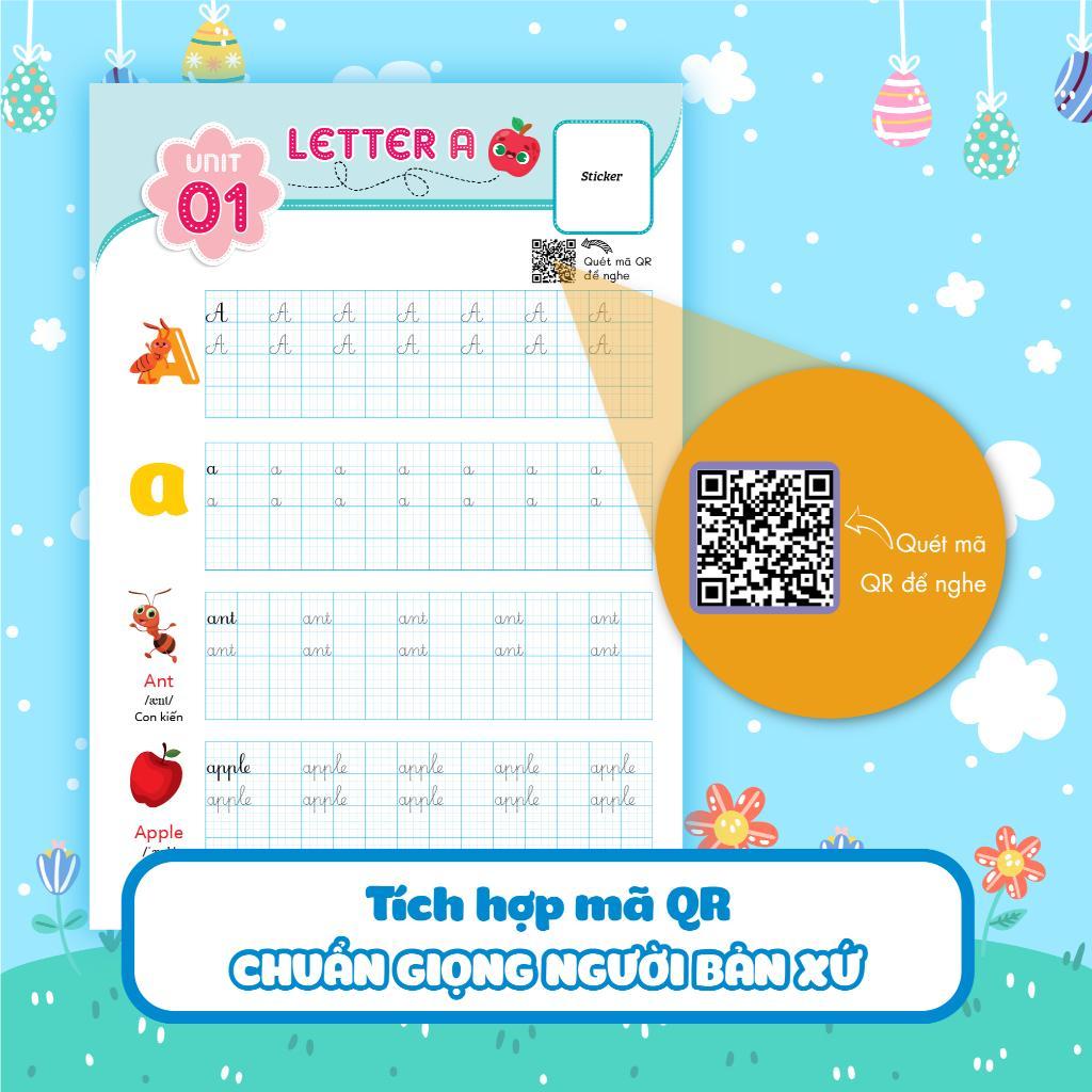 File nghe QR code kèm theo mỗi âm tiết sẽ giúp con NGHE CHUẨN, phát âm đúng tiếng Anh ngay từ khi bắt đầu. Bố mẹ thuận tiện trong việc tìm file nghe cho con chỉ với thao tác quét mã trên điện thoại