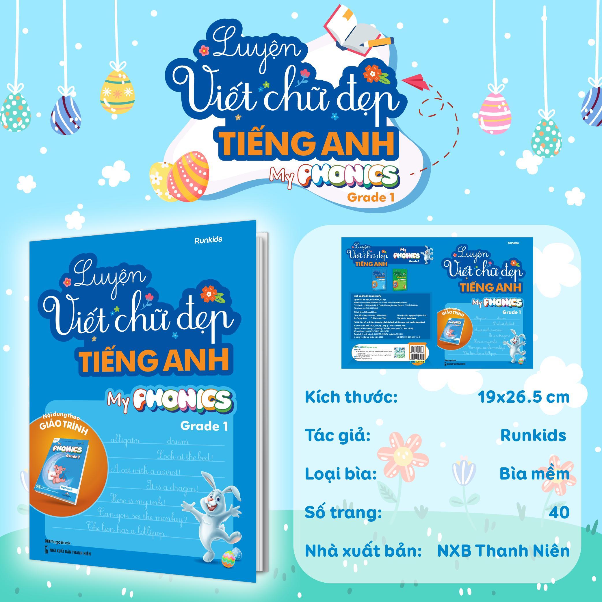 Luyện viết chữ đẹp tiếng Anh My Phonics là bộ sách dành cho các bé lớp 1,2, giúp các con luyện viết chữ đẹp và thành thạo các ngữ âm, từ vựng về vạn vật quen thuộc trong tiếng Anh