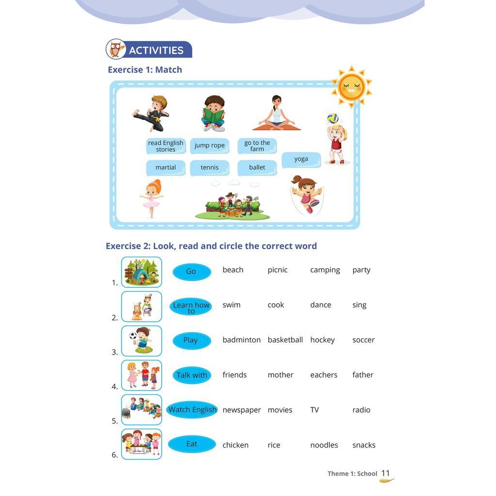 Mỗi Theme bao gồm 5 Lesson với các bài tập luyện viết từ đơn, cụm từ, câu hoàn chỉnh.