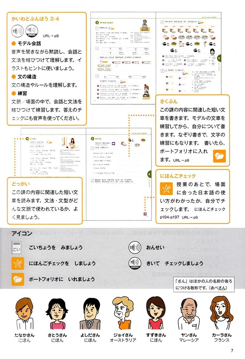 Ở trình độ Nhập môn – trình độ dành cho người mới bắt đầu học, người học sẽ thực hiện các hoạt động giao tiếp đơn giản như: chào hỏi, nói về món ăn yêu thích hay về sở thích của bản thân. Ở trình độ Trung cấp, người học sẽ đọc, nghe tiếng Nhật thực tế, đồng thời luyện tập để có thể nói những đoạn dài về bản thân m.ình. Nói chung trình độ nào của giáo trình cũng hướng tới mục tiêu hiểu biết lẫn nhau thông qua việc giao tiếp thực tế bằng tiếng Nhật.