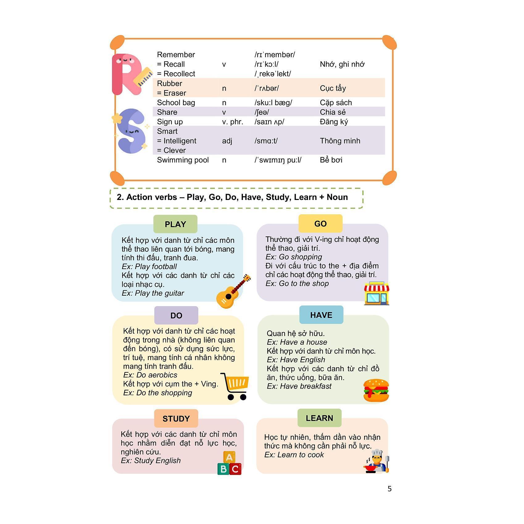 Mỗi bài gồm 4 mục: Kiến thức cơ bản: hệ thống những kiến thức cần thiết nhất mà các em phải nắm vững.. Sai lầm cần tránh lưu ý các em những lỗi