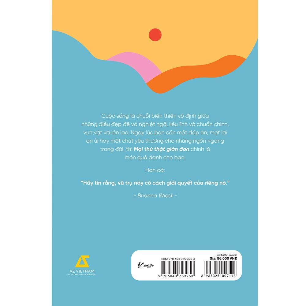 Giới thiệu nội dung: Cuộc sống là chuỗi biến thiên vô định giữa những điều đẹp đẽ và nghiệt ngã, liều lĩnh và chuẩn chỉnh, vụn vặt và lớn lao. Ngay lúc bạn cần một đáp án, một lời an ủi hay một chút yêu thương cho những ngổn ngang trong đời, thì Mọi thứ thật giản đơn chính là món quà dành cho bạn. Hơn cả: “Hãy tin rằng, vũ trụ này có cách giải quyết của riêng nó.”