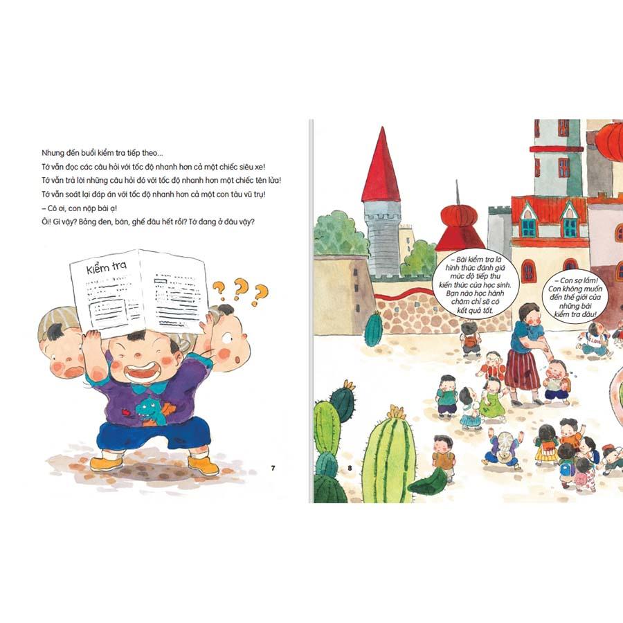 Cuốn Cẩn thận khi làm bài kiểm tra là câu chuyện của bạn nhỏ luôn đọc đề bài, làm bài và nộp bài kiểm tra nhanh nhất để được nhìn thấy ánh mắt ngưỡng mộ của các bạn. Nhưng sau đó, cậu lại vô cùng xấu hổ khi cô giáo trả bài kiểm tra. Cô giáo dẫn các bạn đến thế giới của các bài kiểm tra. Vì bất cẩn nên bạn nhỏ đã bị biến thành con ếch và phải trải qua nhiều thử thách để cậu trở lại thành người như trước. Qua đó, bạn nhỏ đã rút ra được bài học sâu sắc về sự cần thiết của việc đọc đề bài thật kĩ, làm bài thật cẩn thận và soát lại trước khi nộp bài.