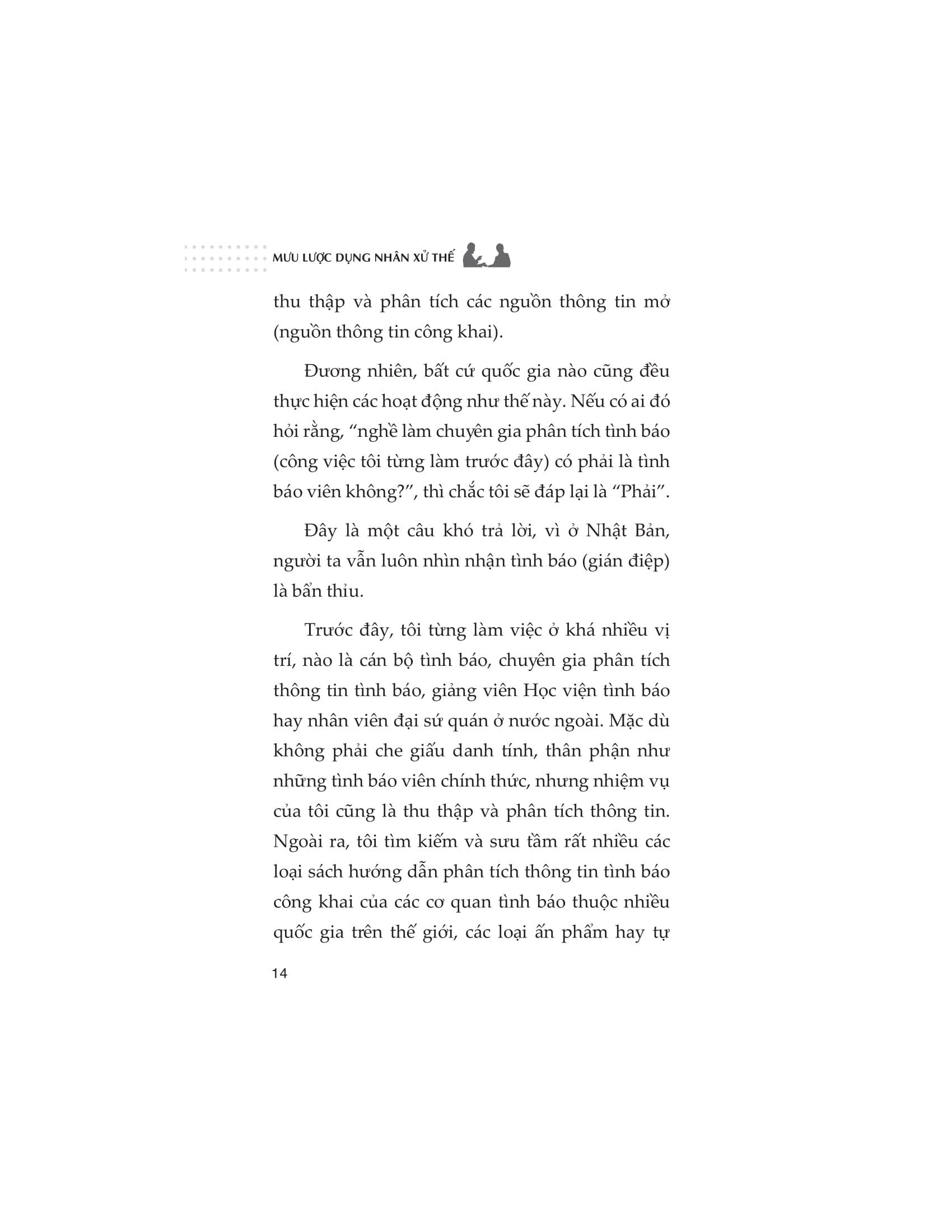 "Mưu lược dụng nhân xử thế" của tác giả Atsumori Ueda, một cựu chuyên gia phân tích tình báo tại Bộ Quốc phòng Nhật Bản, là một cuốn sách độc đáo và hấp dẫn, tiết lộ cách các đặc vụ bí mật hàng đầu trên thế giới sử dụng trí óc của họ để đạt được kết quả xuất sắc trong những nhiệm vụ đầy cam go.