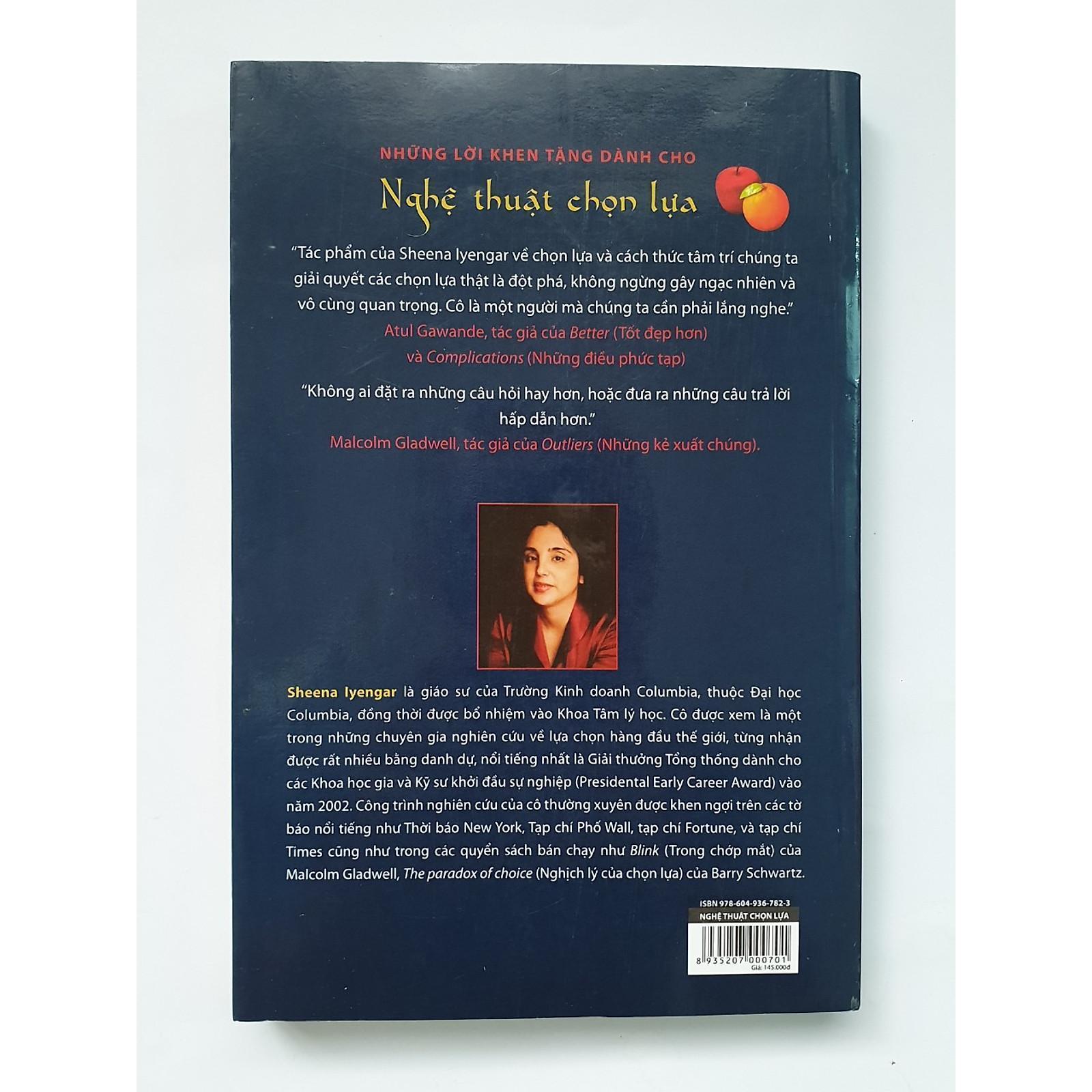 Trong cuốn Nghệ thuật chọn lựa, giáo sư đại học Columbia, Sheena Iyengar, một chuyên gia hàng đầu về chọn lựa, đặt mình vào nhiệm vụ nặng nề đó là giúp chúng ta trở thành những người chọn lựa sáng suốt hơn. Cô đã nêu ra nhiều câu hỏi đầy thú vị: Khao khát lựa chọn là bẩm sinh hay được tạo nên bởi văn hóa? Tại sao đôi khi chúng ta chọn lựa những điều ngược lại với sở thích của cá nhân? Chúng ta thực sự có bao nhiêu quyền năng đối với những chọn lựa của mình? Cuối cùng, cô đưa ra những câu trả lời bất ngờ và rất sâu sắc, từ nghiên cứu nghiêm túc, bài bản đã được trao giải thưởng của cô.