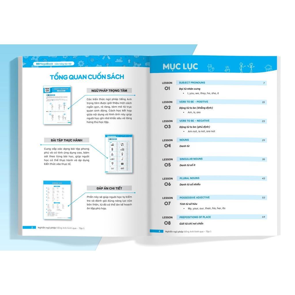 Các kiến thức ngữ pháp tiếng Anh trọng tâm được giới thiệu một cách ngắn gọn, rõ ràng, kèm mô tả trực quan sinh động. Cách học kết hợp giữa nội dung và hình ảnh này giúp người học ghi nhớ khắc sâu và tăng hứng thú học tập.
