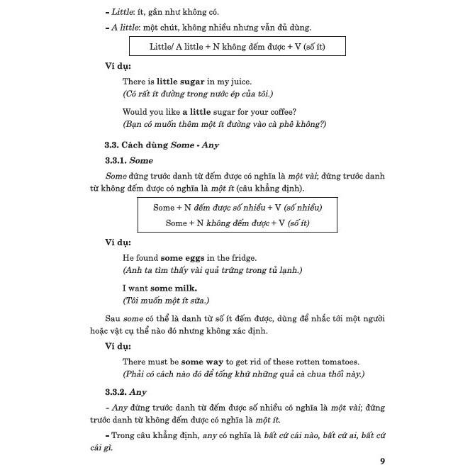 Bên cạnh việc giải thích kỹ càng các kiến thức ngữ pháp, sách còn đưa vào nhiều ví dụ minh họa và các dạng bài tập phù hợp để các em thực hành. Việc rèn luyện các bài tập này là vô cùng hữu ích bởi nó không những giúp các em sử dụng thành thạo các cấu trúc ngữ pháp, mà còn giúp các em tự tin để đạt điểm tốt hơn trong các bài kiểm tra định kì.