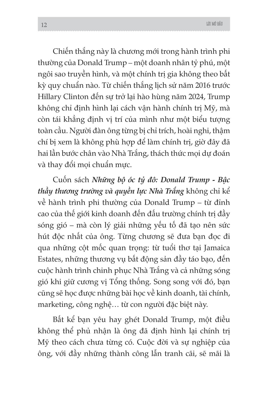 "Donald Trump - Bậc thầy thương trường và quyền lực Nhà Trắng" không chỉ là cuốn tiểu sử, mà còn là nguồn cảm hứng và bài học quý giá cho bất kỳ ai khao khát thành công.