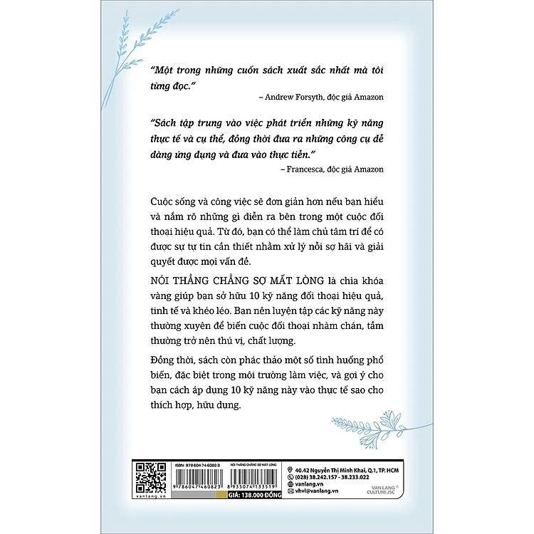 "Nói Thẳng Chẳng Sợ Mất Lòng' là chìa khóa vàng giúp bạn sở hữu 10 kỹ năng đối thoại hiệu quả, tinh tế và khéo léo. Bạn nên luyện tập các kỹ năng này thường xuyên để biến cuộc đối thoại nhàm chán, tầm thường trở nên thú vị, chất lượng.