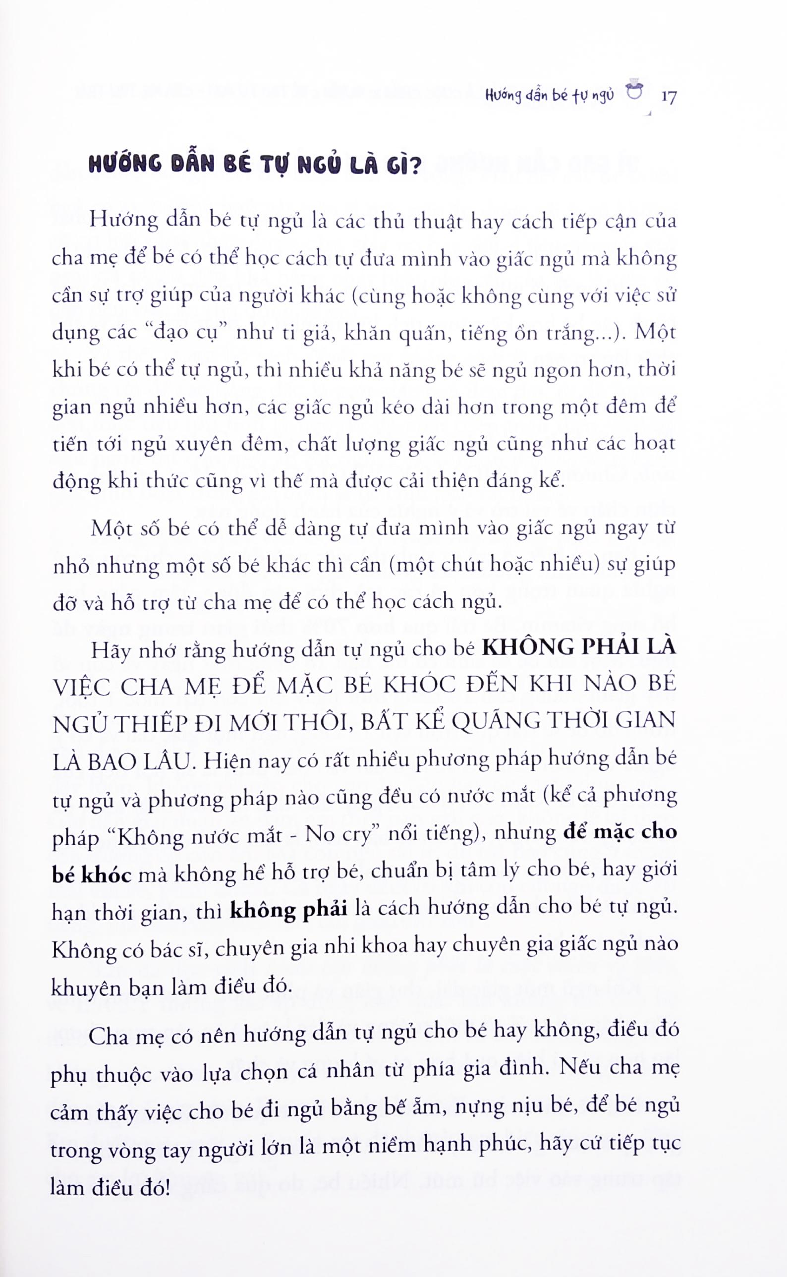 Em bé tự ngủ là một trong những chủ đề nhạy cảm mà bấy lâu nay tuy được áp dụng rất phổ biến tại phương tây nhưng còn khá xa lạ với các bậc cha mẹ Việt. Em bé tự ngủ hầu như là không thể trong quan niệm của cha mẹ Việt, nhưng một thực tế ngày càng đƣợc hình thành và khẳng định rằng một khi những em bé biết tự ngủ, ngủ tự lập mà không cần sự hỗ trợ (ti mẹ, ru ẵm…) có nhiều cơ hội hơn để ngủ đủ theo nhu cầu của m.ình.