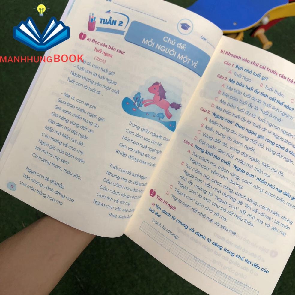 Mỗi phiếu trong cuốn sách sẽ tương ứng với nội dung một tuần học trên lớp của các em. Các em sẽ được tiếp thu các kiến thức về từ, câu, dấu câ và viết đoạn văn theo chủ đề nhằm rèn luyện kĩ năng đọc, viết, từ , từ viết đúng đến viết hay và sáng tạo.