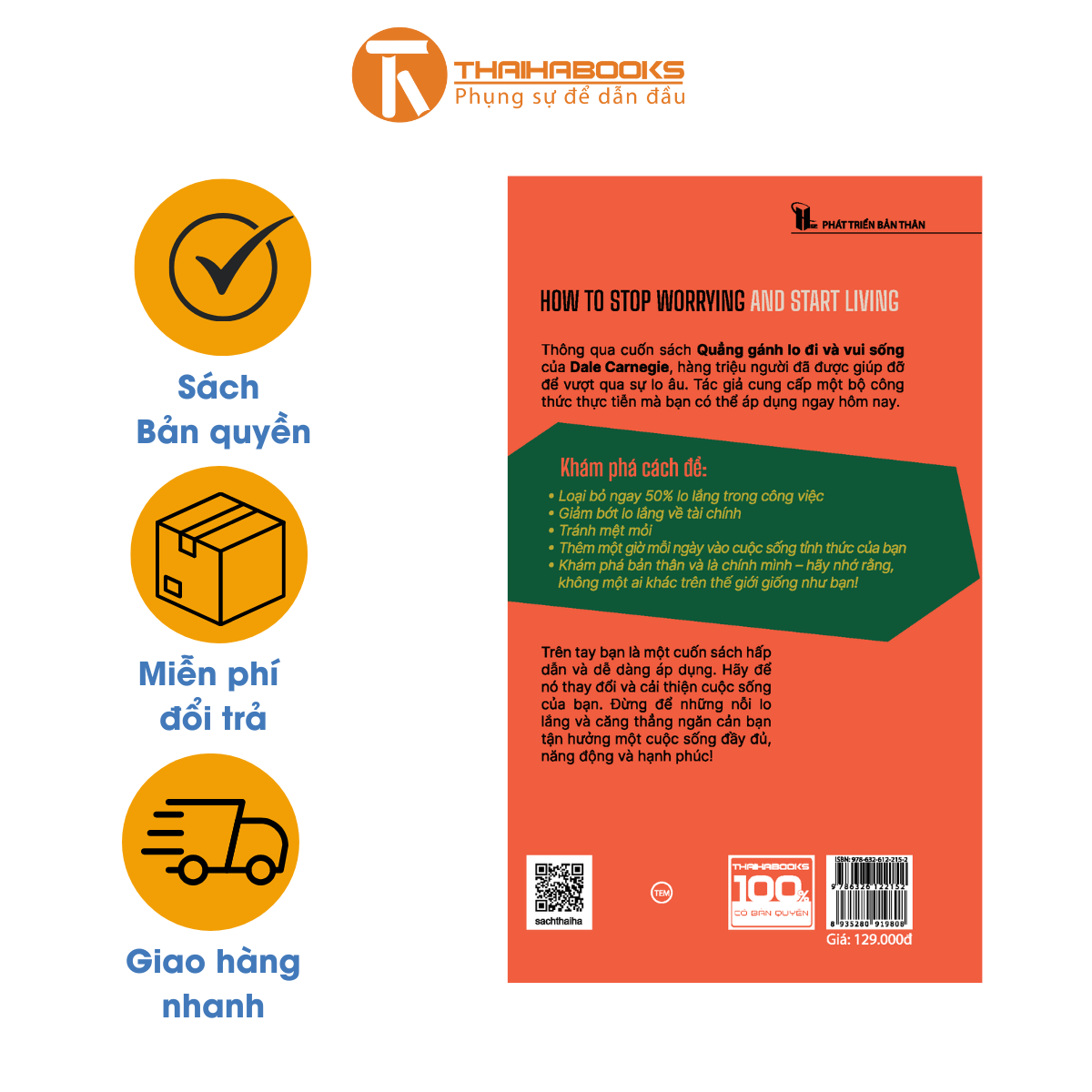 Tên sách Quẳng gánh lo đi và vui sống Tác giả Dale Carnegie Dịch giả Khánh Trang Số trang 368 trang Trọng lượng 400 grams Nhà xuất bản Công Thương Khổ 9.5 x 16 cm Barcode - ISBN 8935280919808 - 9786326122152 Quẳng gánh lo đi và vui sống (Sách tinh gọn) Dale Carnegie Cuốn sách “Quẳng gánh lo đi và vui sống” của Dale Carnegie xuất bản lần đầu năm 1948, đây được xem là một cẩm nang kinh điển giúp con người vượt qua lo âu, tìm lại sự bình an trong tâm hồn và sống một cuộc đời ý nghĩa hơn. Cuốn sách tập trung vào 03 khía cạnh chính: