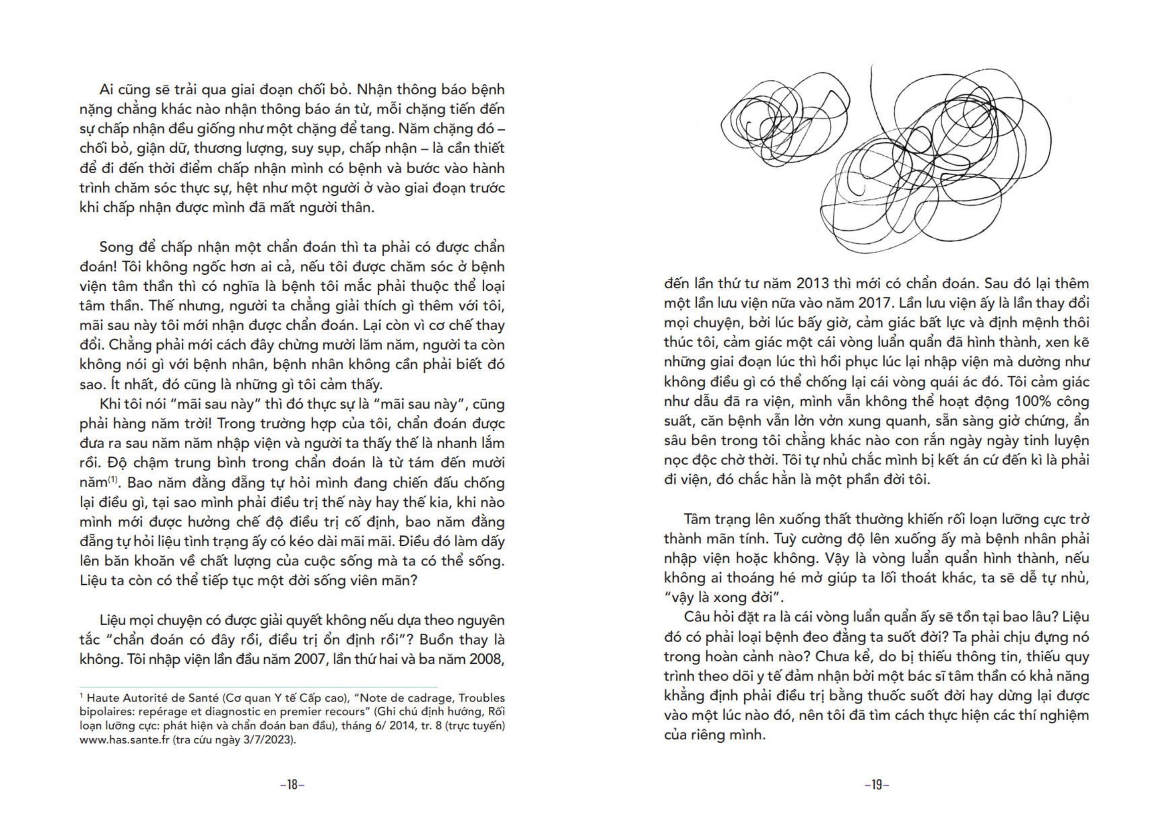 Rối Loạn Lưỡng Cực - Hành Trình Dài Chung Sống - Trò Chuyện Về Sức Khoẻ Tâm Thần - Từ Chẩn Đoán Đến Cuộc Sống Hằng Ngày Rối Loạn Lưỡng Cực - Hành Trình Dài Chung Sống là cuốn sách sống động với nhiều hình ảnh minh hoạ giúp chúng ta hiểu rõ hơn về chứng rối loạn lưỡng cực và phần nào giải đáp những băn khoăn nảy sinh: Làm cách nào để xác định rối loạn lưỡng cực? Chứng bệnh này có thể chữa khỏi được không? Cuối cùng, phải chung sống với nó ra sao? Tuy còn xa lạ với nhiều người, song rối loạn lưỡng cực lại ảnh hưởng tới từ 1 - 2,5% dân số. Dẫu vậy, khi mắc bệnh, bệnh nhân vẫn phải trải qua cuộc đấu tranh thực sự: không được thừa nhận, bị kì thị, hành trình chẩn đoán gian nan, khó khăn trong kiểm soát triệu chứng… Người rối loạn lưỡng cực thường cảm thấy cô độc và không được ai thấu hiểu. Bằng kinh nghiệm sống và hành trình y tế từng trải qua, cùng sự đồng hành của bác sĩ Céline Renouard, tác giả Fabrice Saulière đã kể lại hành trình cuộc đời của m.ình, hé lộ với chúng ta thế nào là cuộc sống thực sự của một người rối loạn lưỡng cực, đồng thời đưa ra những lời khuyên giá trị để có thể “chung sống” với rối loạn lưỡng cực tốt hơn trong cuộc sống hằng ngày.