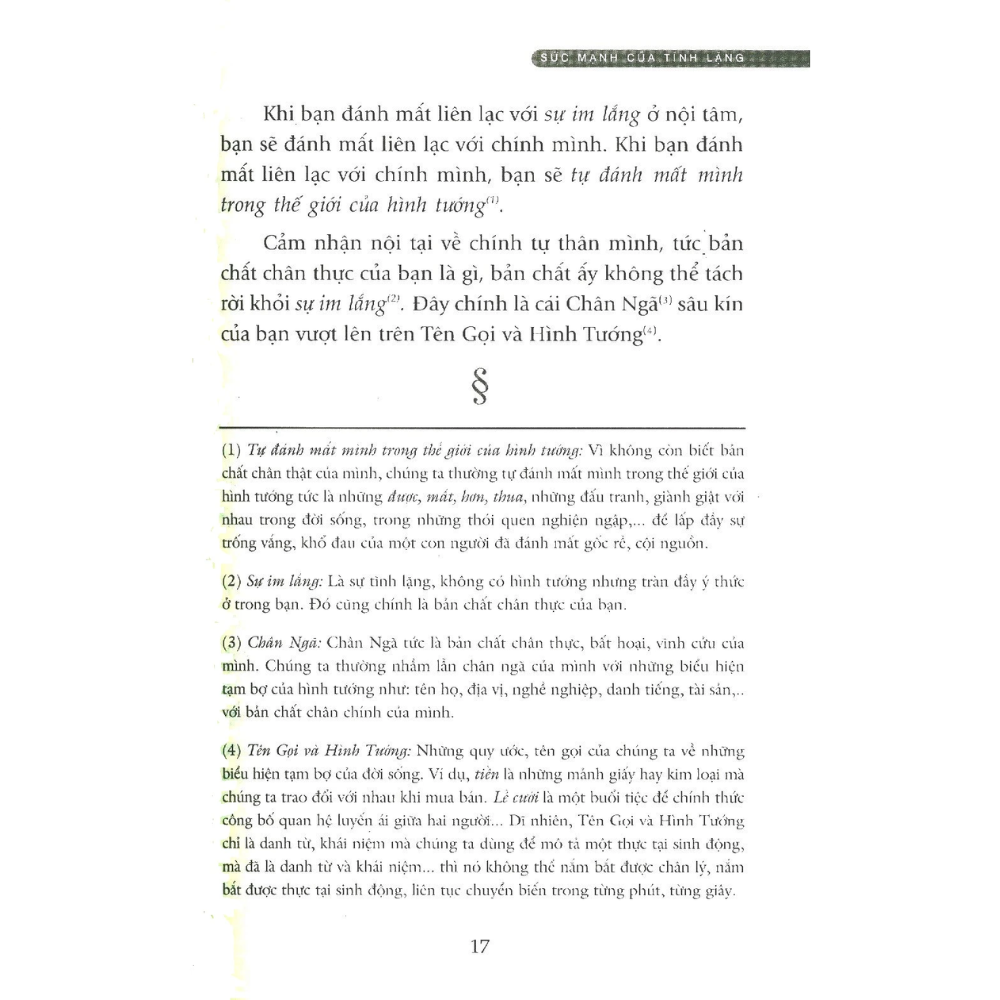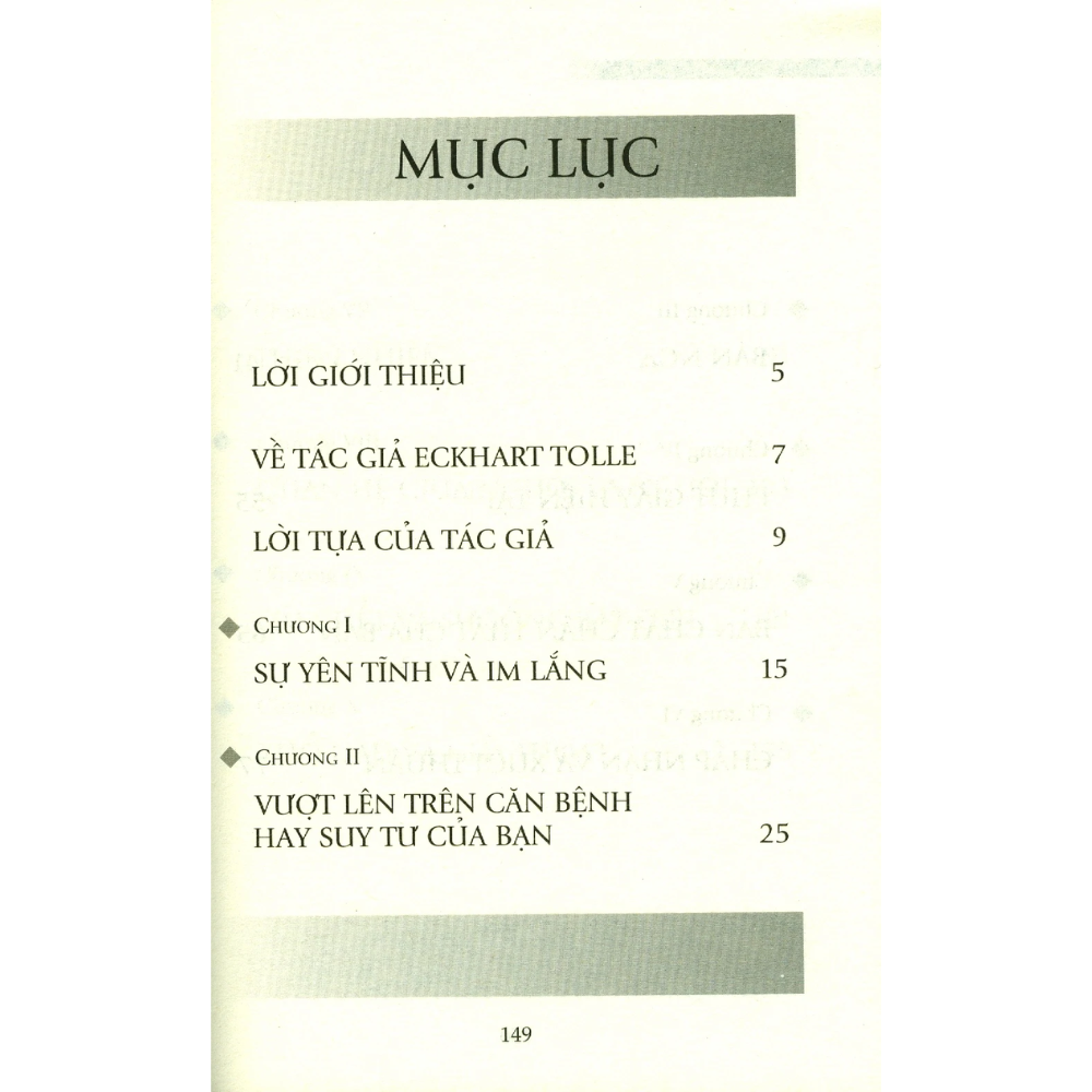Sức mạnh của tĩnh lặng được viết bởi Ekhert Tolle - một trong những vị thầy có tầm ảnh hưởng về mặt tâm linh nhất trên thế giới. Ông cũng là tác giả của quyển sách nổi danh “ Thức tỉnh mục đích sống” làm bừng tỉnh tư tưởng về cuộc sống của nhiều thế hệ.