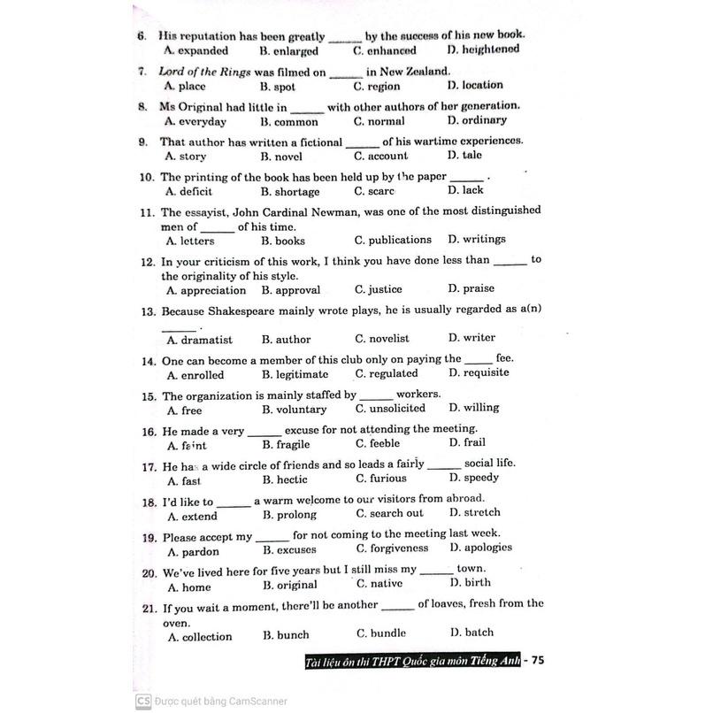 Tài Liệu Ôn Thi Trung Học Phổ Thông Môn Tiếng Anh cuốn sách được biên soạn với mục đích trước hết là làm tài liệu