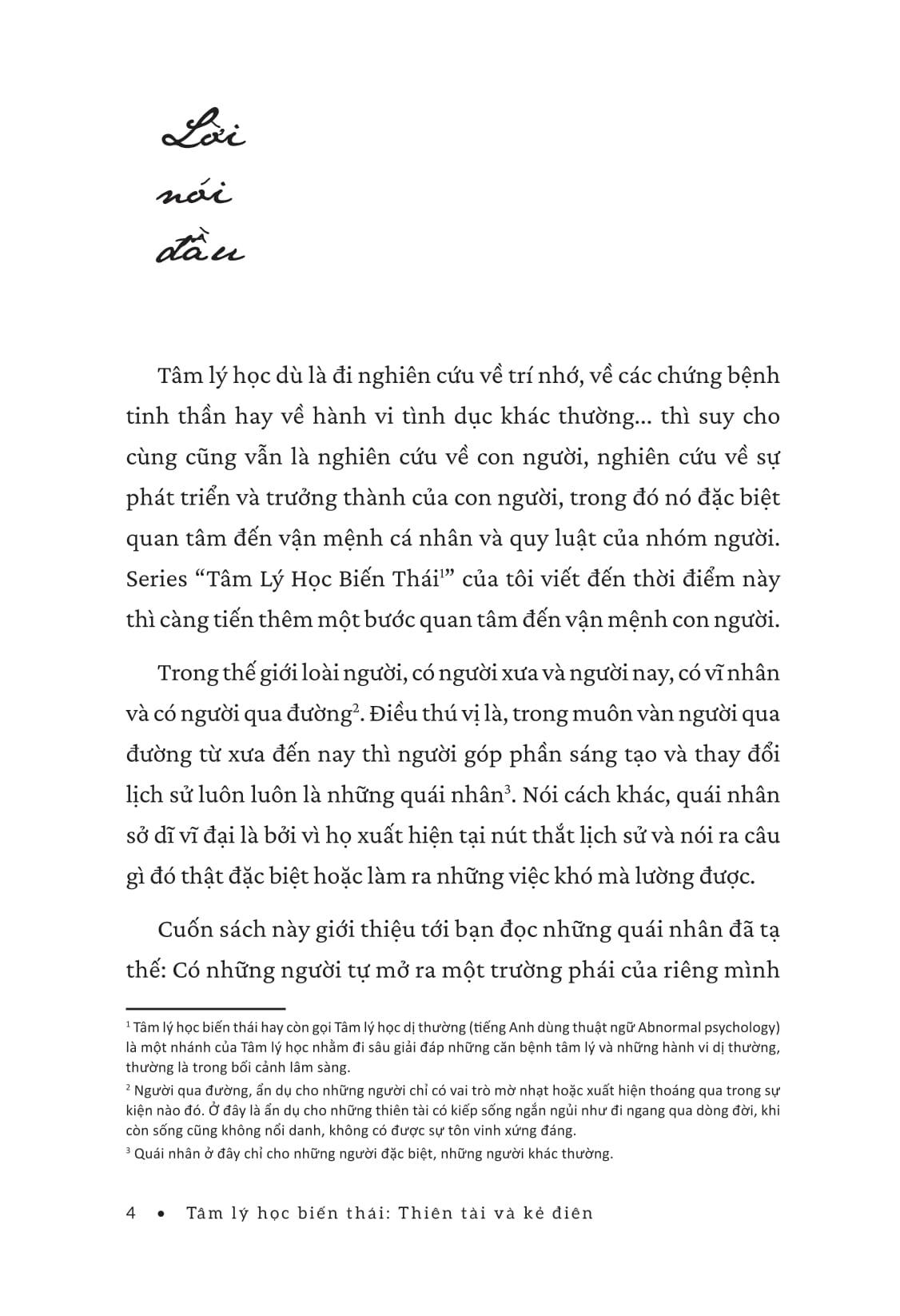 Tâm lý học biến thái là nhánh thú vị nhất của tâm lý học, không chỉ nghiên cứu những điều bất thường, mà còn giúp ta hiểu hơn về bản chất con người, về những góc khuất tâm lý vẫn luôn hiện hữu trong xã hội. Liệu điên loạn có phải là cái giá phải trả cho thiên tài? Liệu xã hội có thực sự công bằng với những bộ óc vĩ đại?
