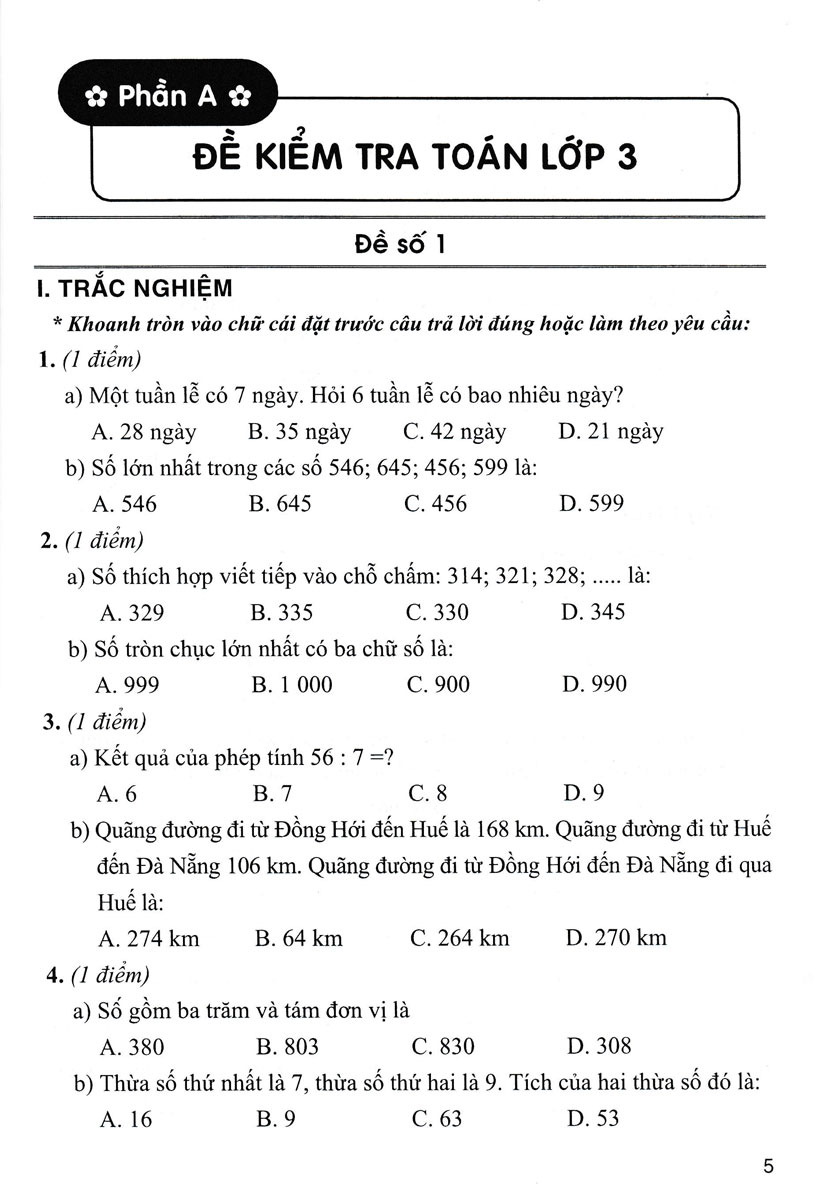 - Phần A: ĐỀ KIỂM TRA MÔN TOÁN LỚP 3