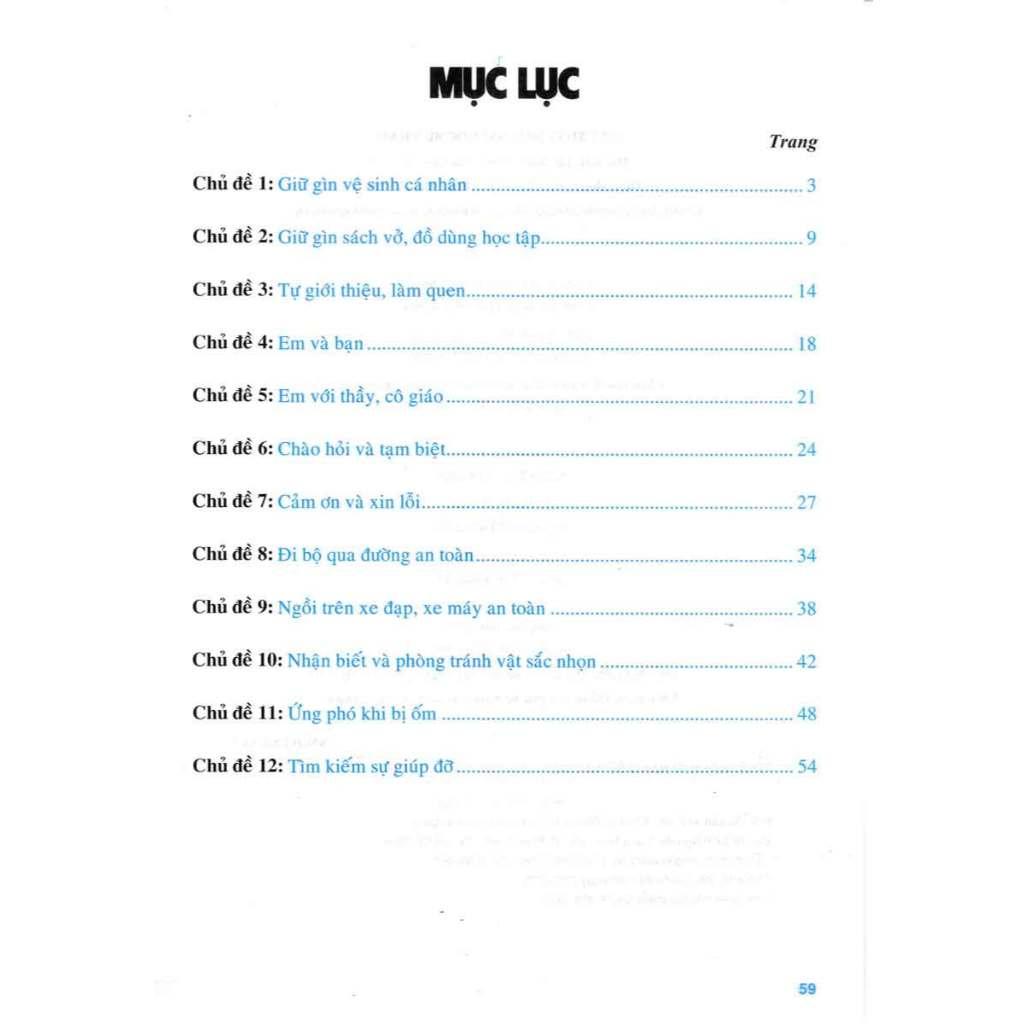 Thực Hành Kĩ Năng Sống Lớp 1 được biên soạn nhằm giúp các em học sinh Tiểu học hình thành, rèn luyện và đặc biệt là thực hiện được các nhóm kĩ năng theo các mối quan hệ của các em với môi trưởng gia đình và xã hội, như các nhóm kĩ năng: phát triển bản thân, quan hệ bạn bè, ứng xử trong gia đình, học tập; quan hệ và ứng xử trong xã hội.