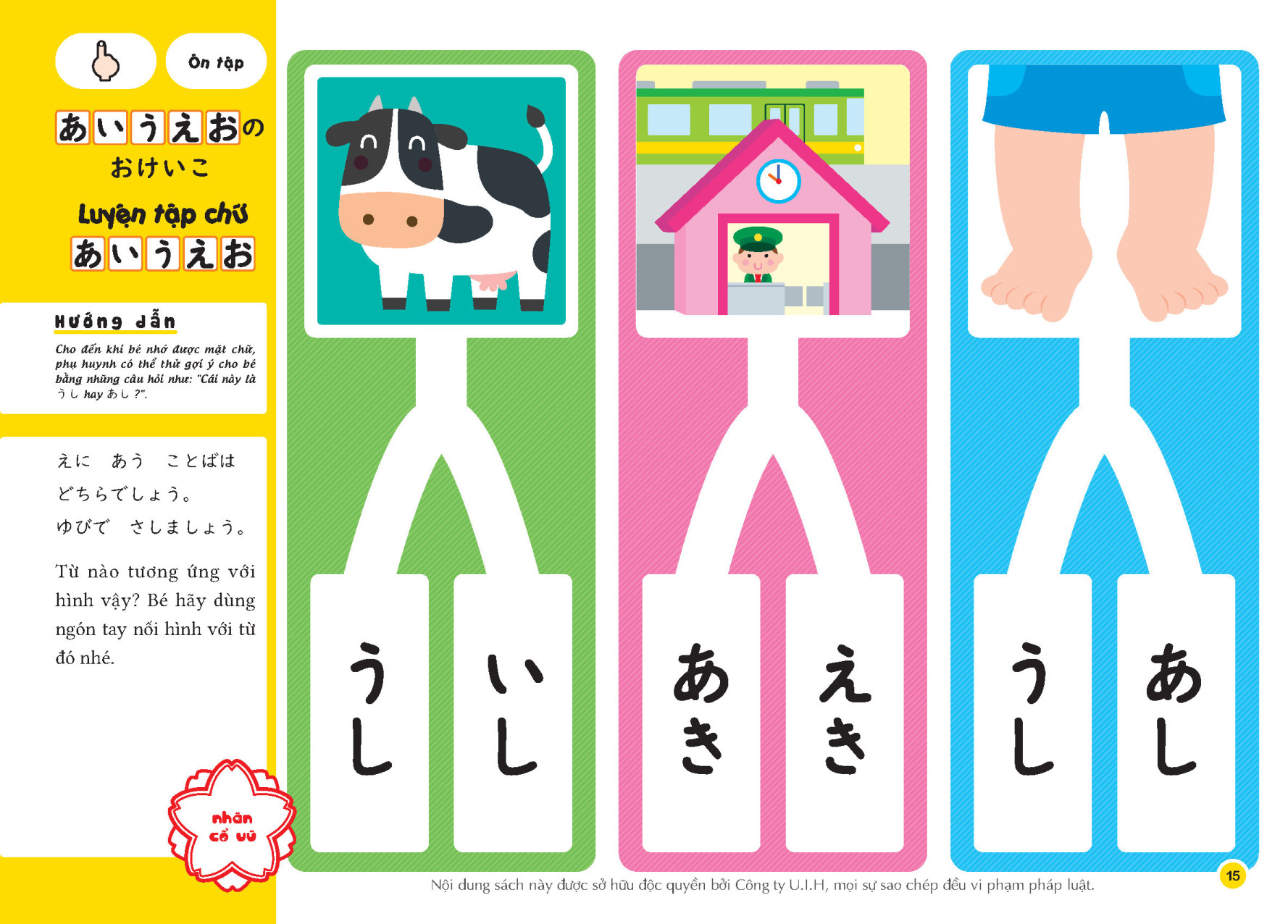 ☆ Có đính kèm “Nhãn dán” ở đầu trang sách. (Khi trẻ hoàn thành bài tập, hãy khen “Con làm tốt lắm” và dán "Nhãn cổ vũ", tạo hứng thú và động lực cho trẻ cố gắng.)