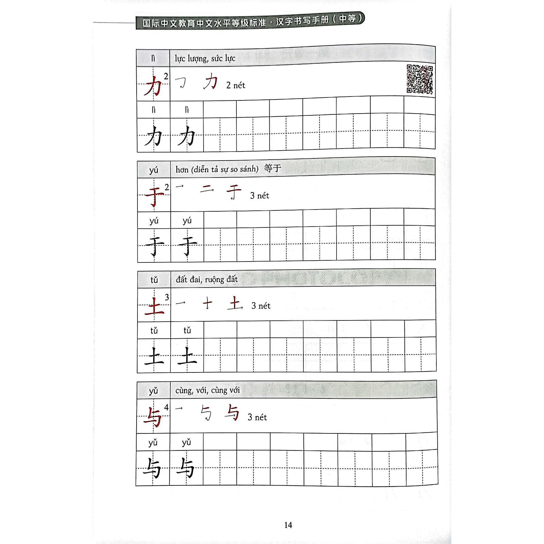 - Quét mã QR, người học có thể xem hình ảnh động thể hiện thứ tự các nét khi viết của đa số chữ Hán.